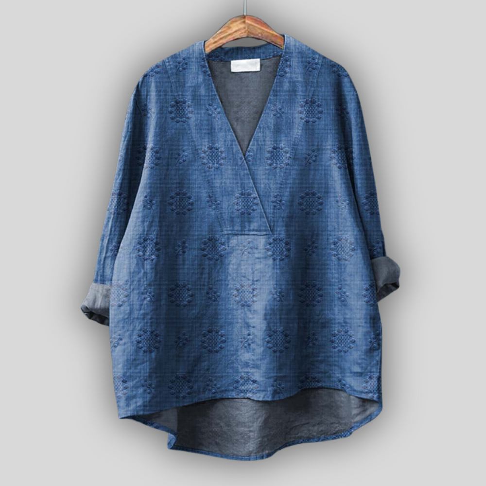 Lininė palaidinė su mygtuku ir V formos iškirpte