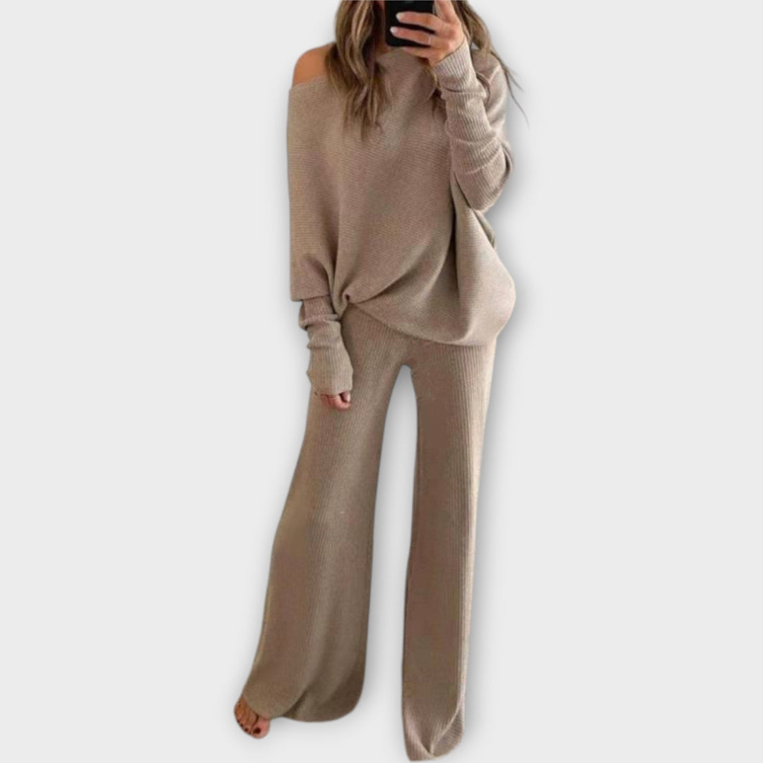 Sintija - Adīts komplekts ar platām biksēm un brīvu džemperi