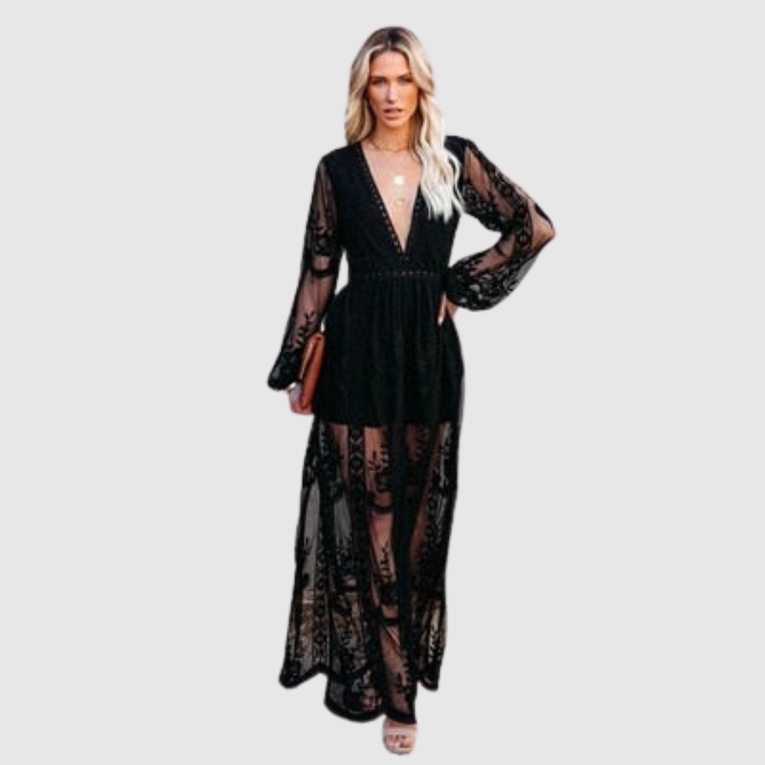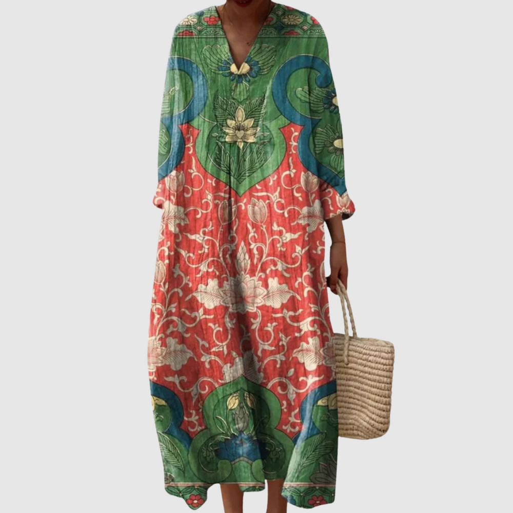 Лилия – Дълга бохемска рокля с мотив
