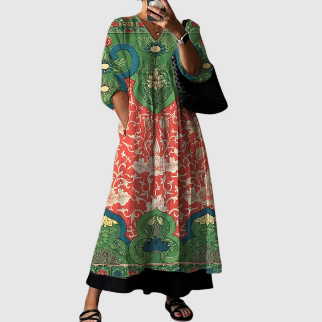 Лилия - Макси рокля с винтидж цветен принт