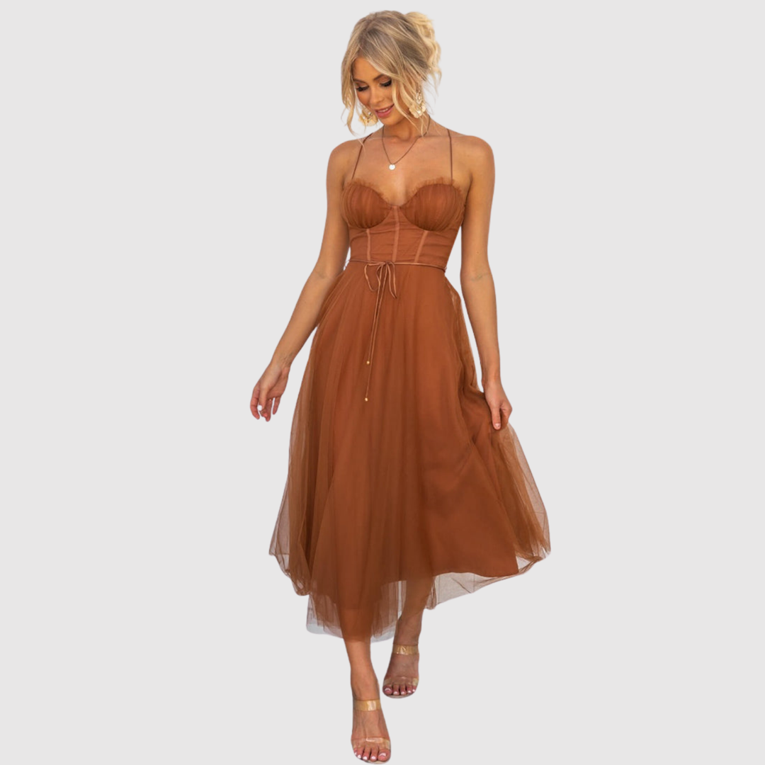 Лилия - Миди рокля с корсетни детайли