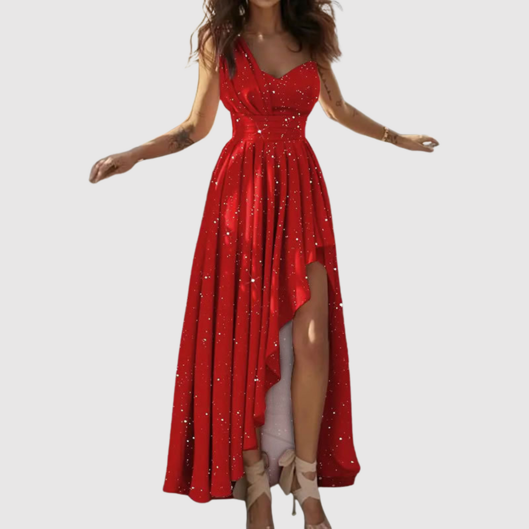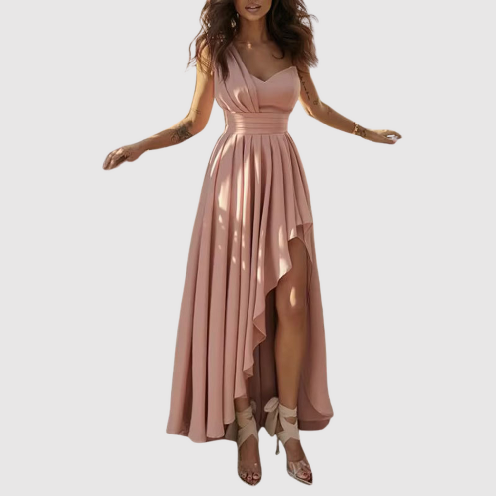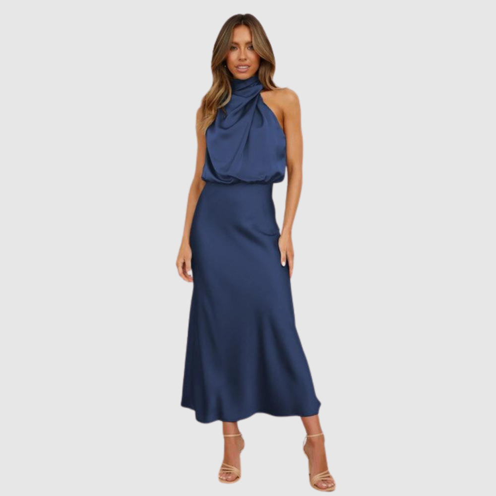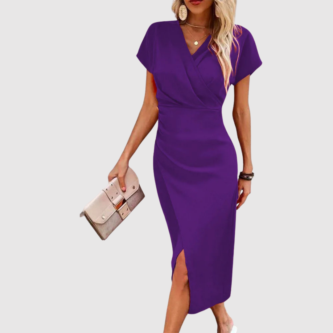 Лилия – Сатенена рокля с V-образно деколте и разрез