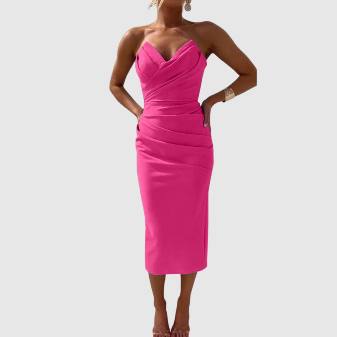 Лилия – Миди рокля с сърцевидно деколте и ефект на размах