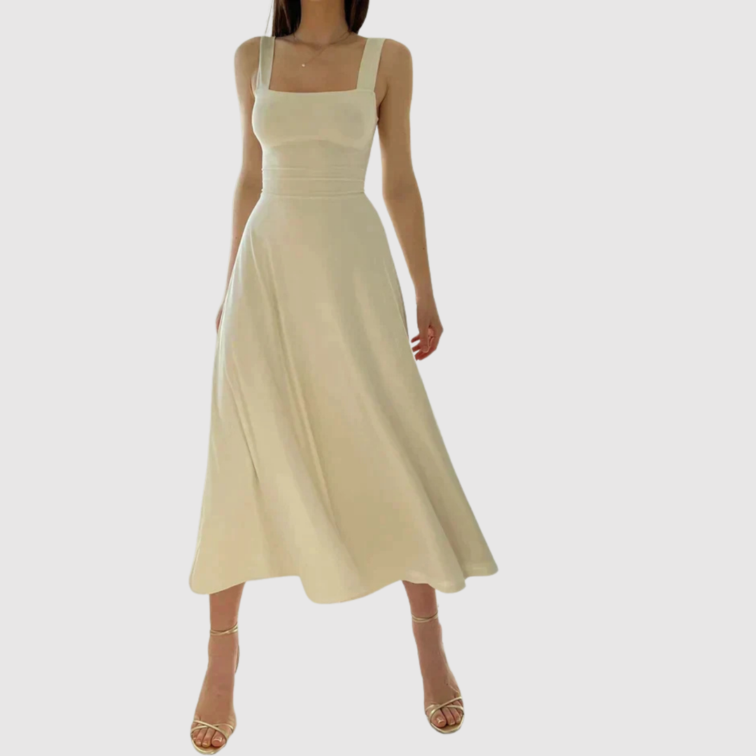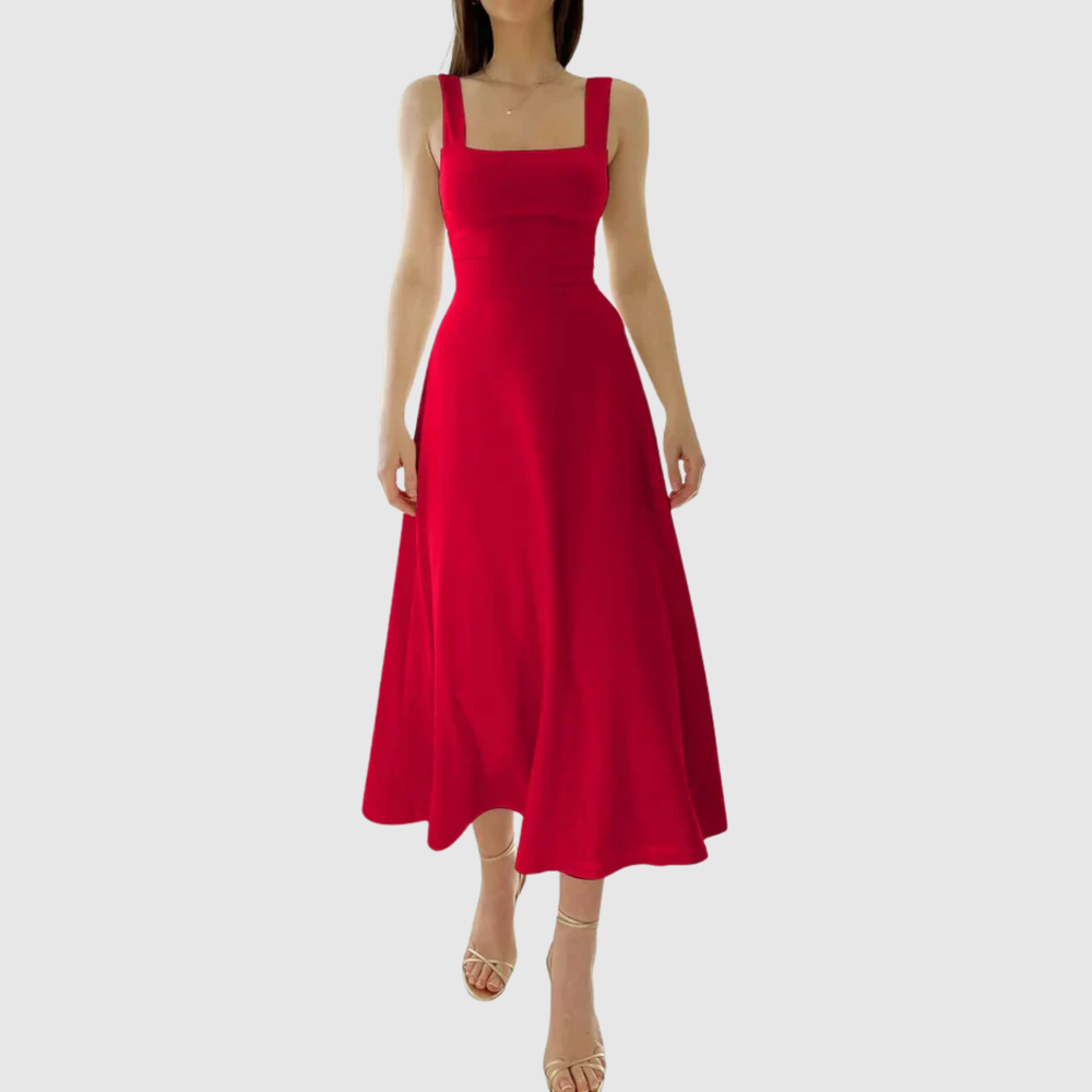 Лилия – Миди рокля с квадратно деколте и А-силует