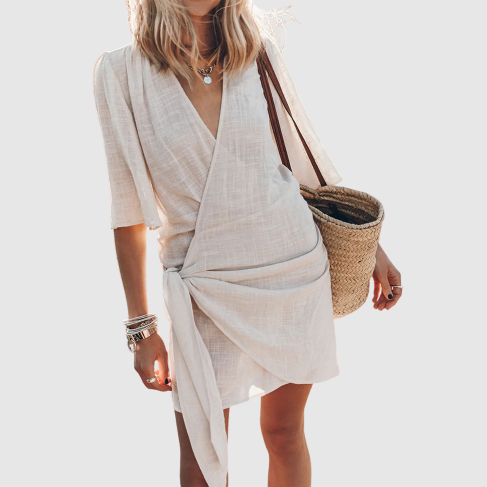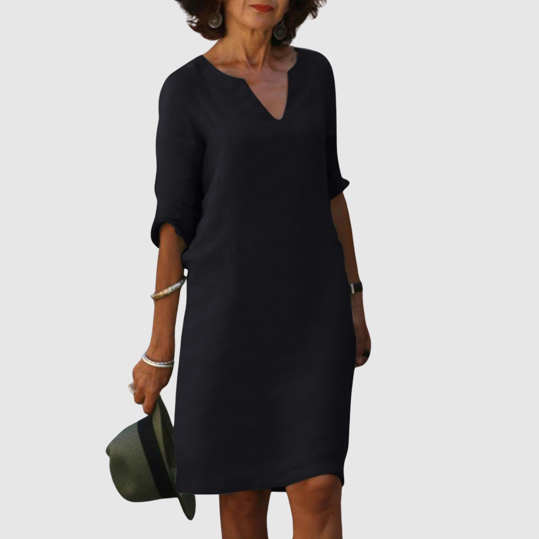 Лилия – Елегантна фигурална рокля с V-образно деколте