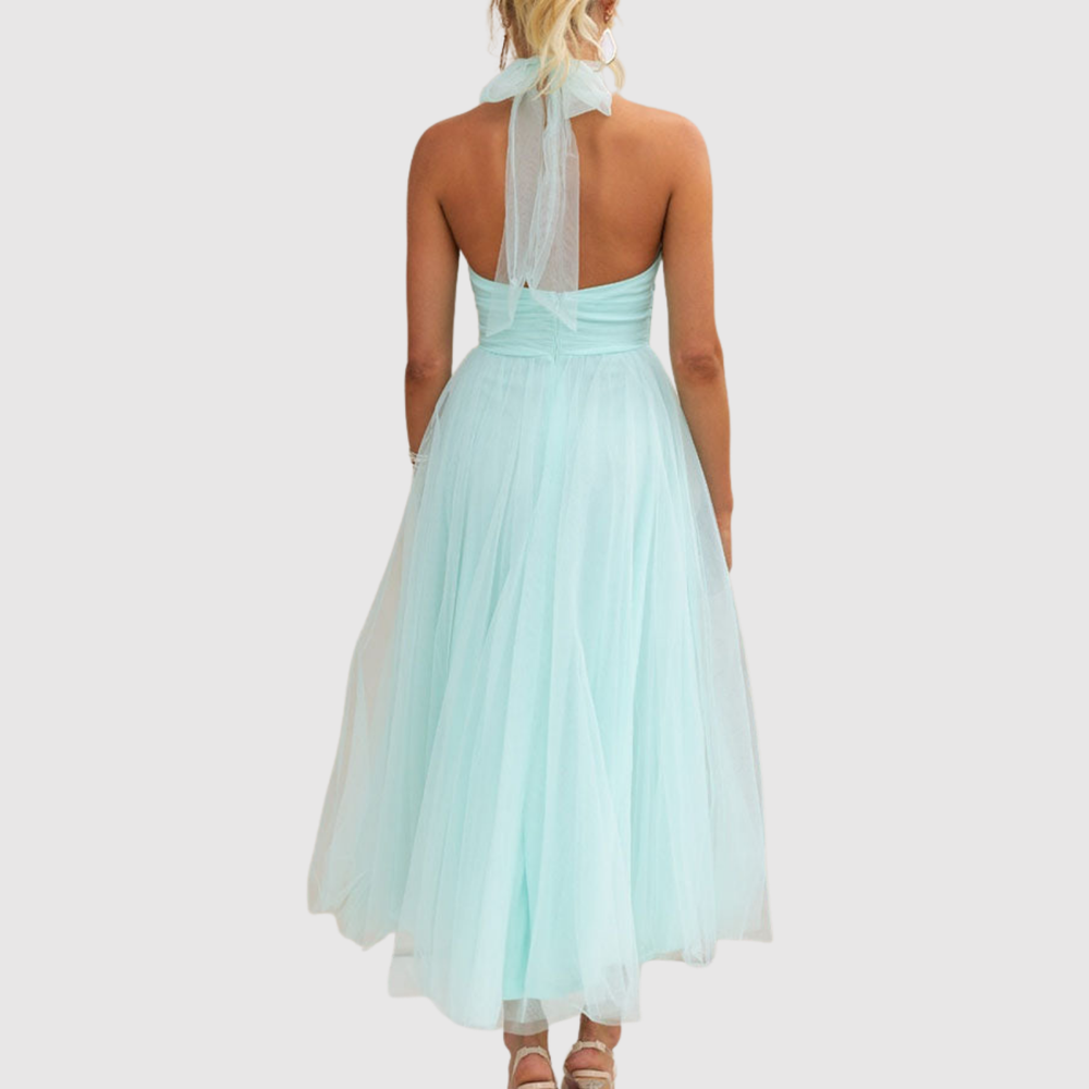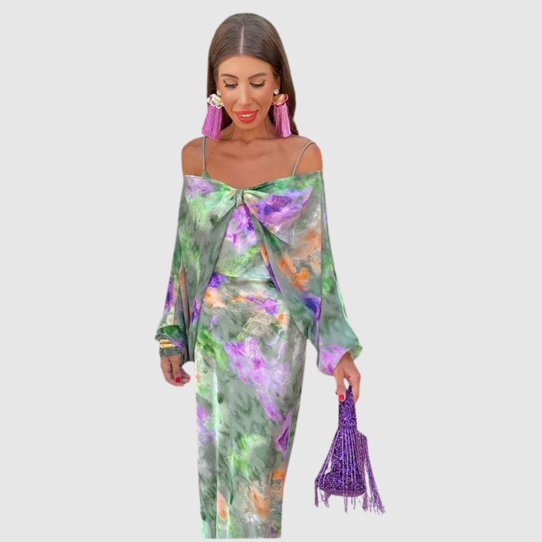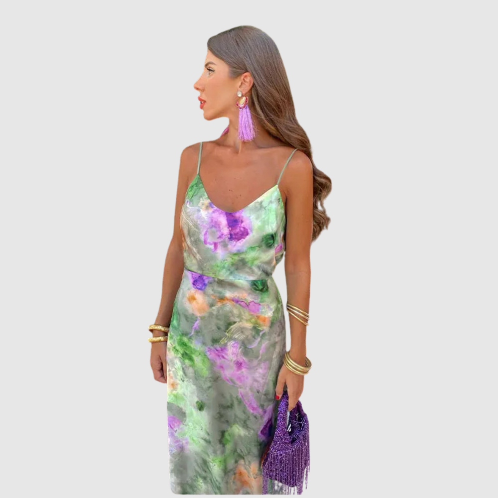 Лилия – Макси-рокля с акварелен принт и открит гръб