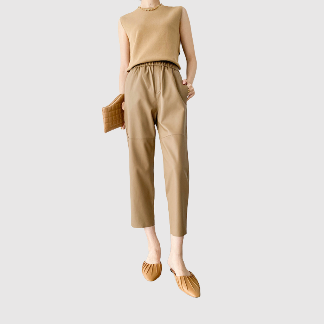 Ралица – Панталони с кожен вид с еластична талия