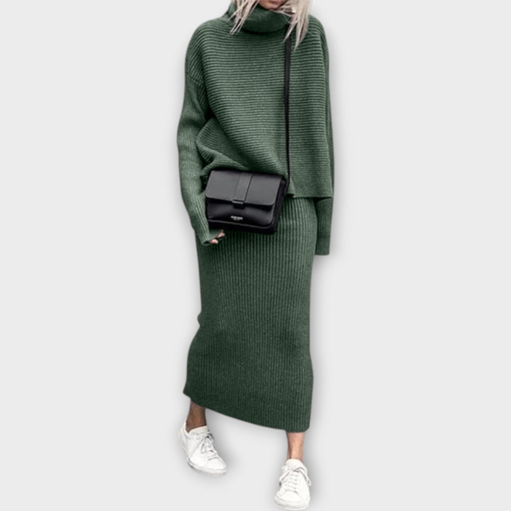 Evija - Adīta komplekta ar apkakli un svārkiem