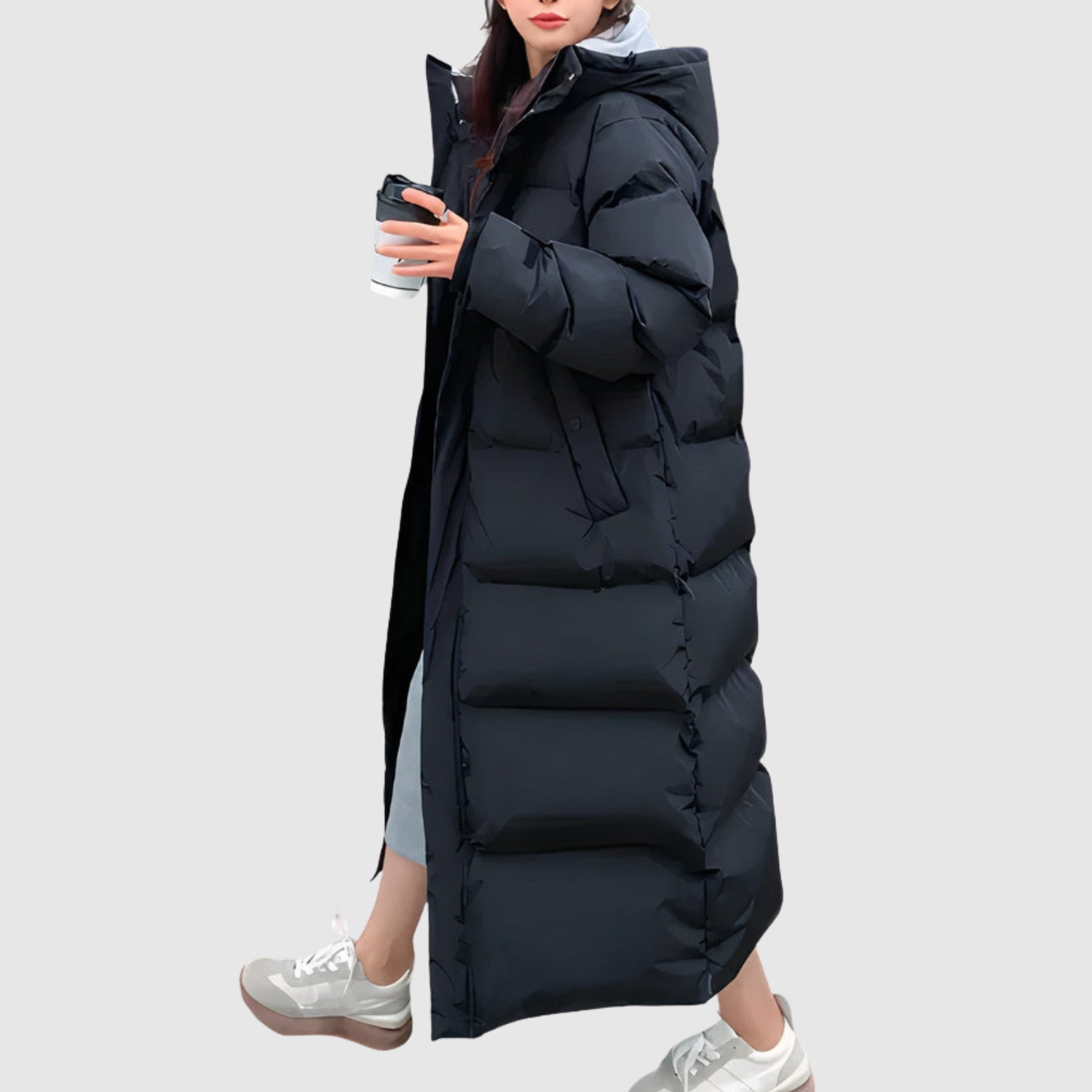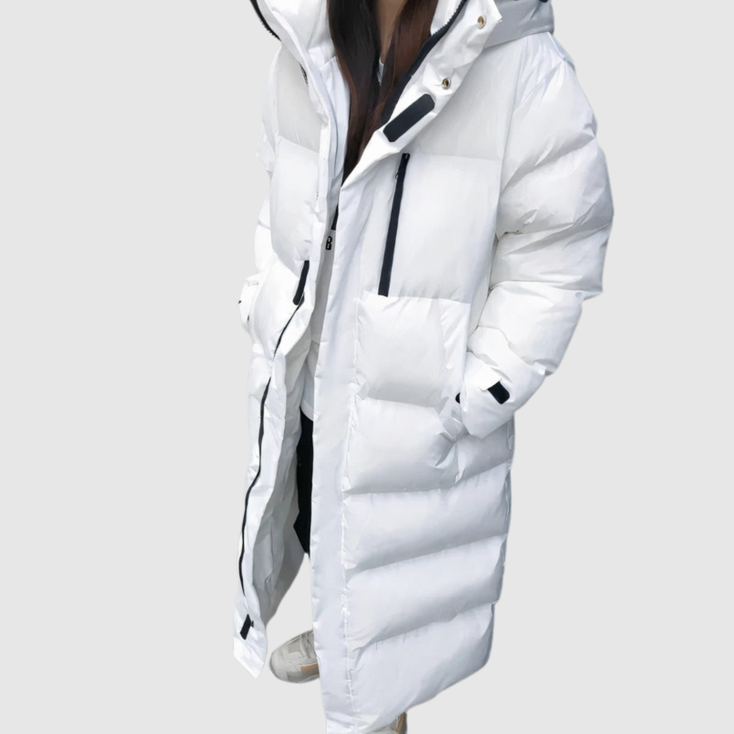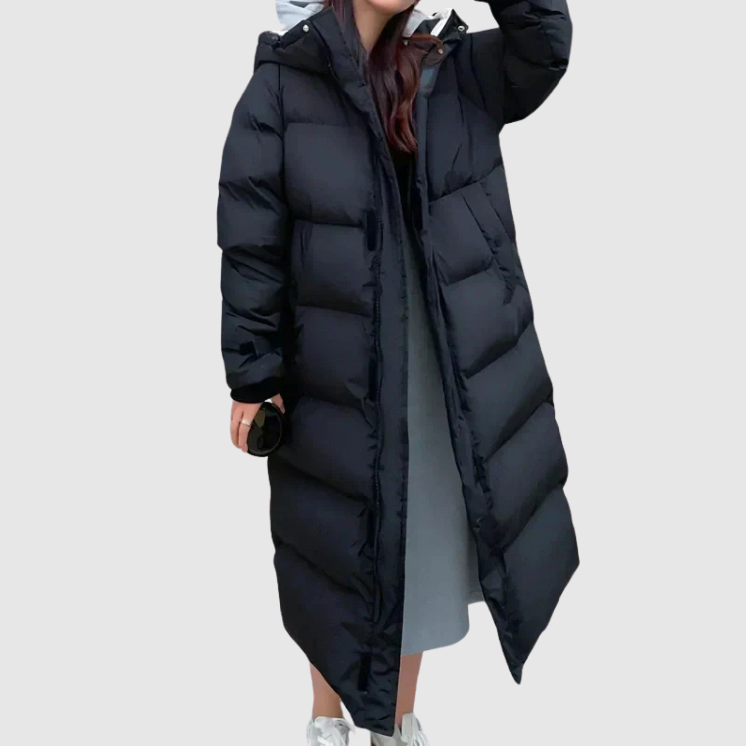 Дръжте се топло и стилно дори в най-студените дни с това дълго ватирано палто. С дебела подплата и защитна качулка, то предлага ефективна изолация срещу студ и вятър. Практичният цип отпред го прави лесно за обличане, докато просторните джобове осигуряват допълнителна функционалност в ежедневието. Универсално палто, което комбинира комфорт и модерен градски стил за зимата.
