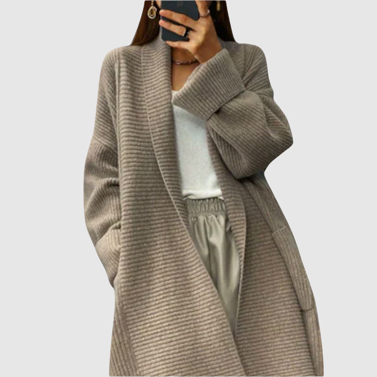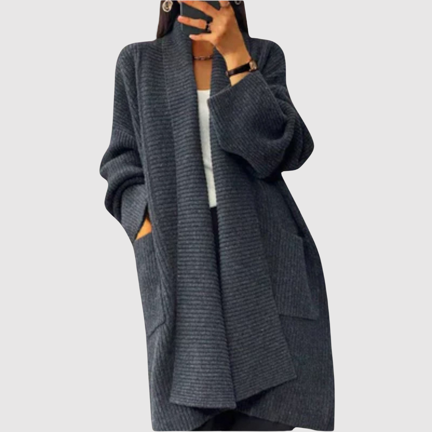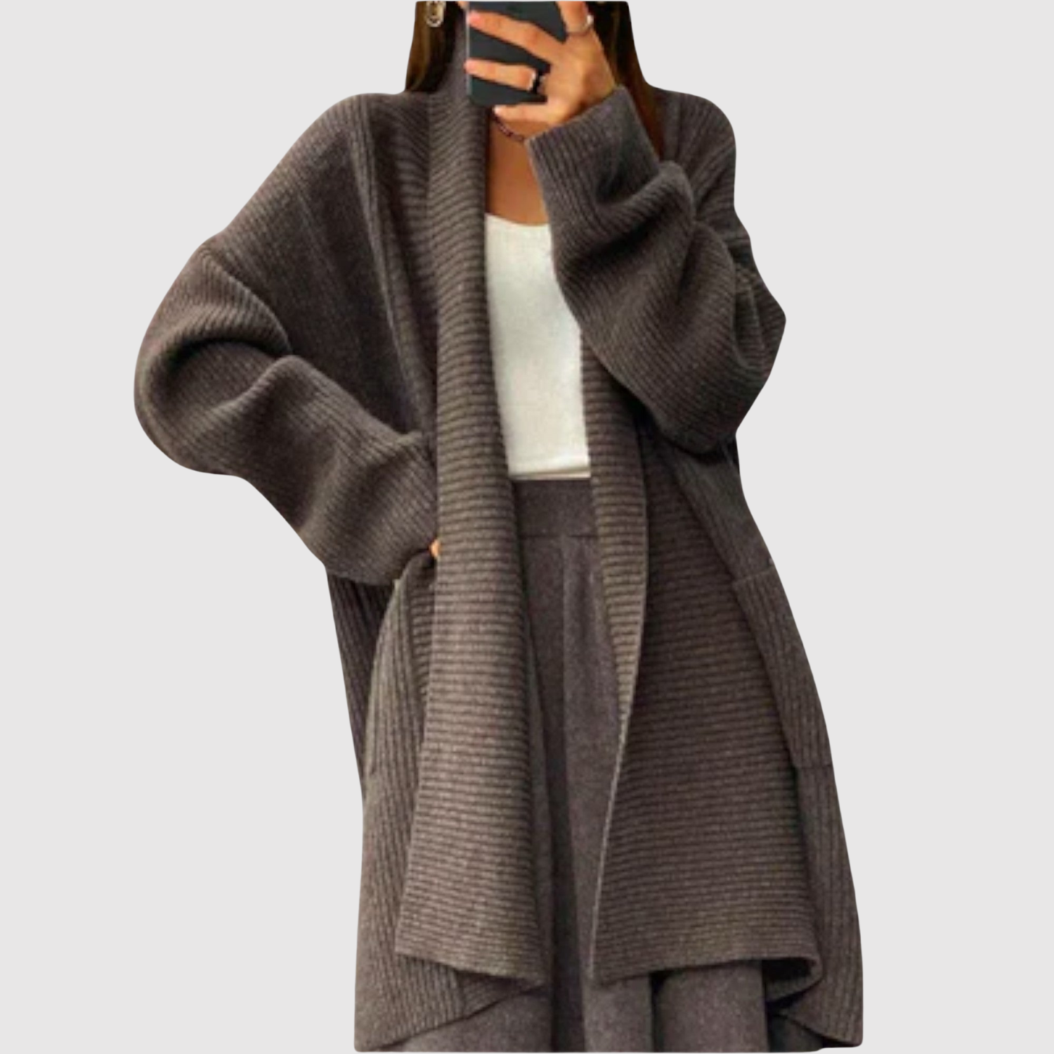 Елена – Дълъг вязан кардиган с топли ръкави