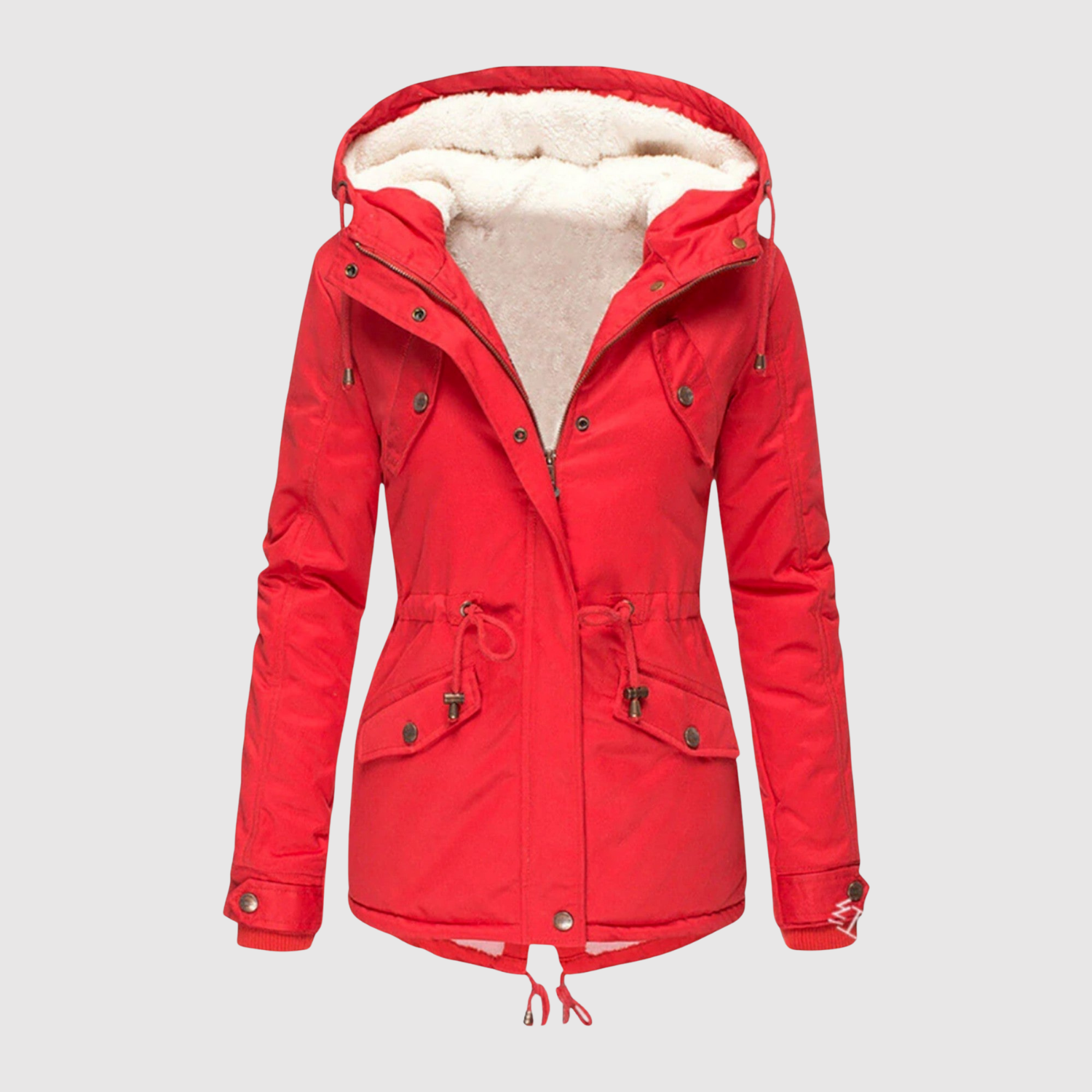 Тази подплатена зимна парка е топла, стилна и функционална. С флийсова подплата, регулируема талия и качулка с пухкава ръб, тя е готова да ви държи комфортно през цялата зима.