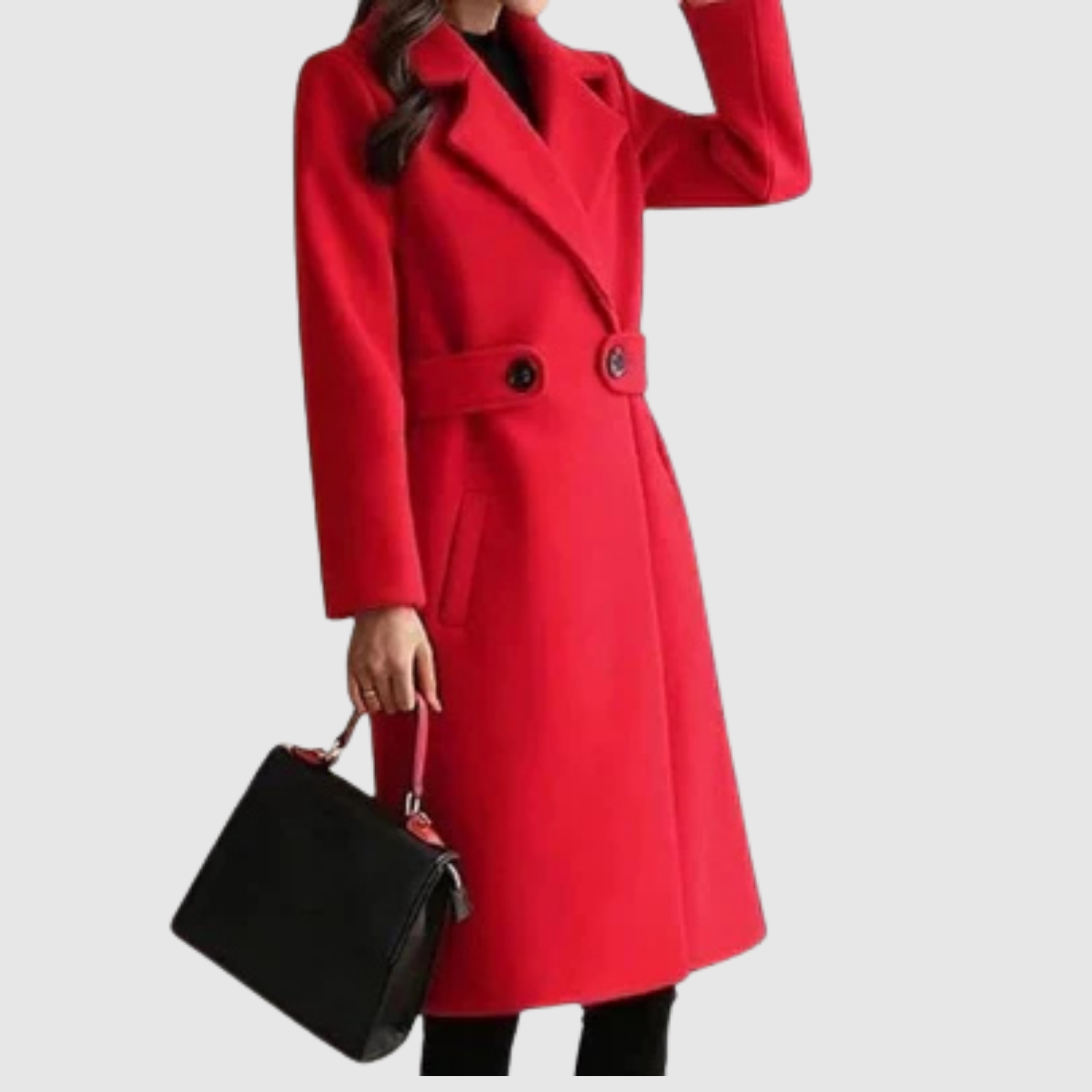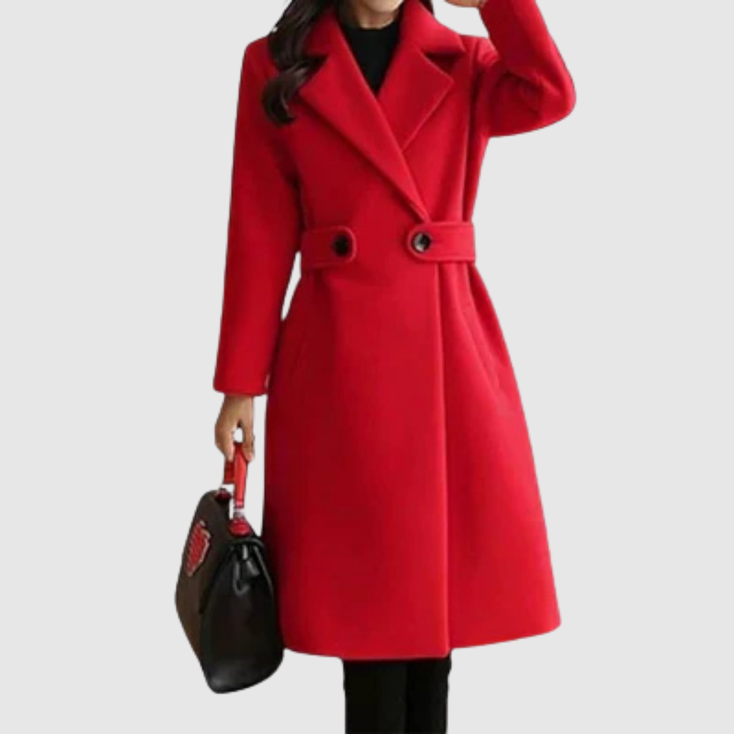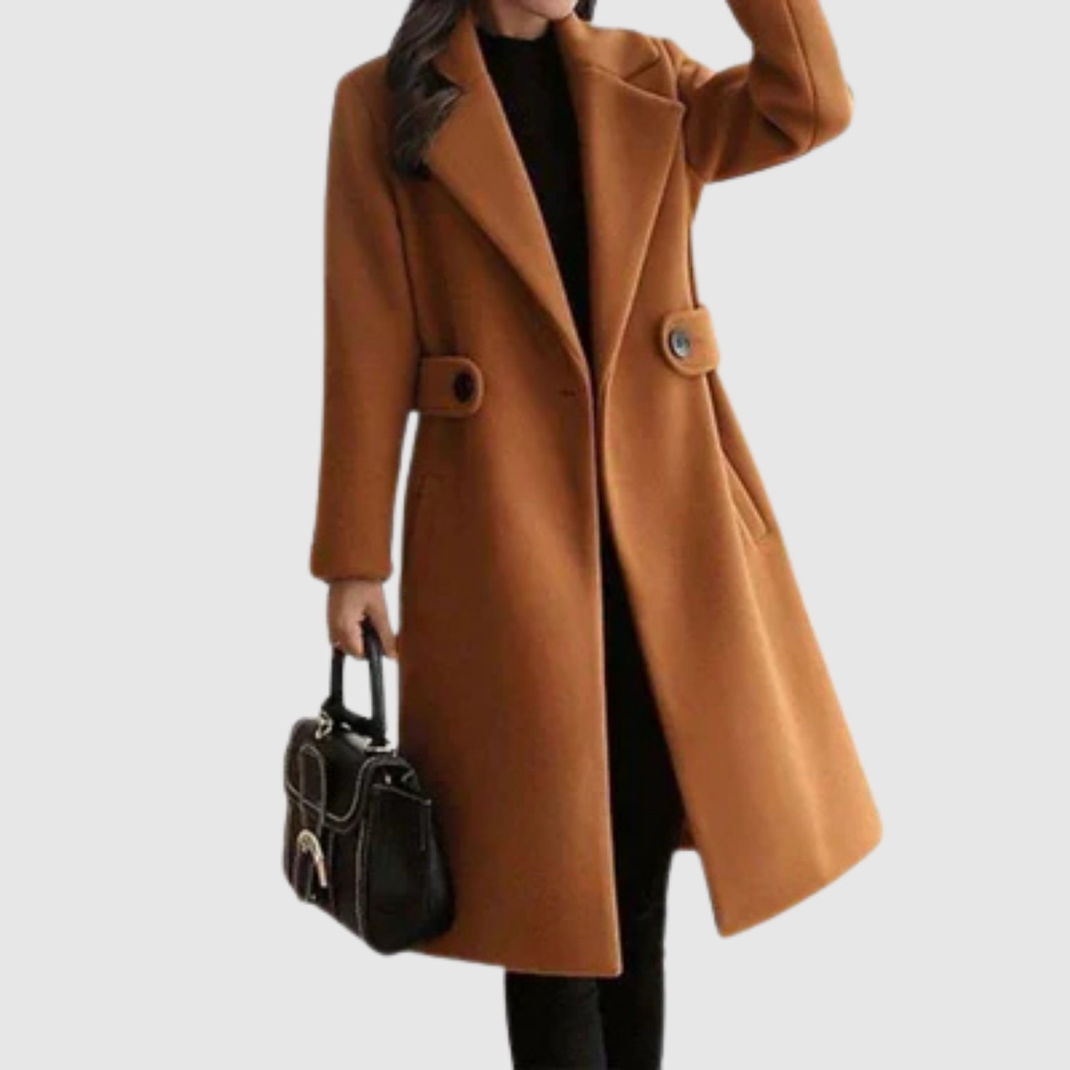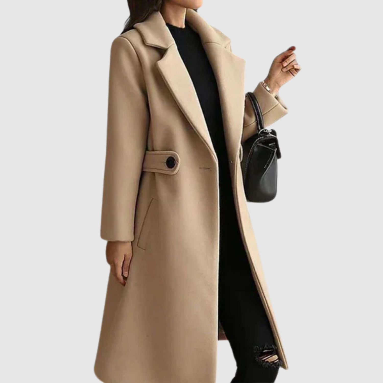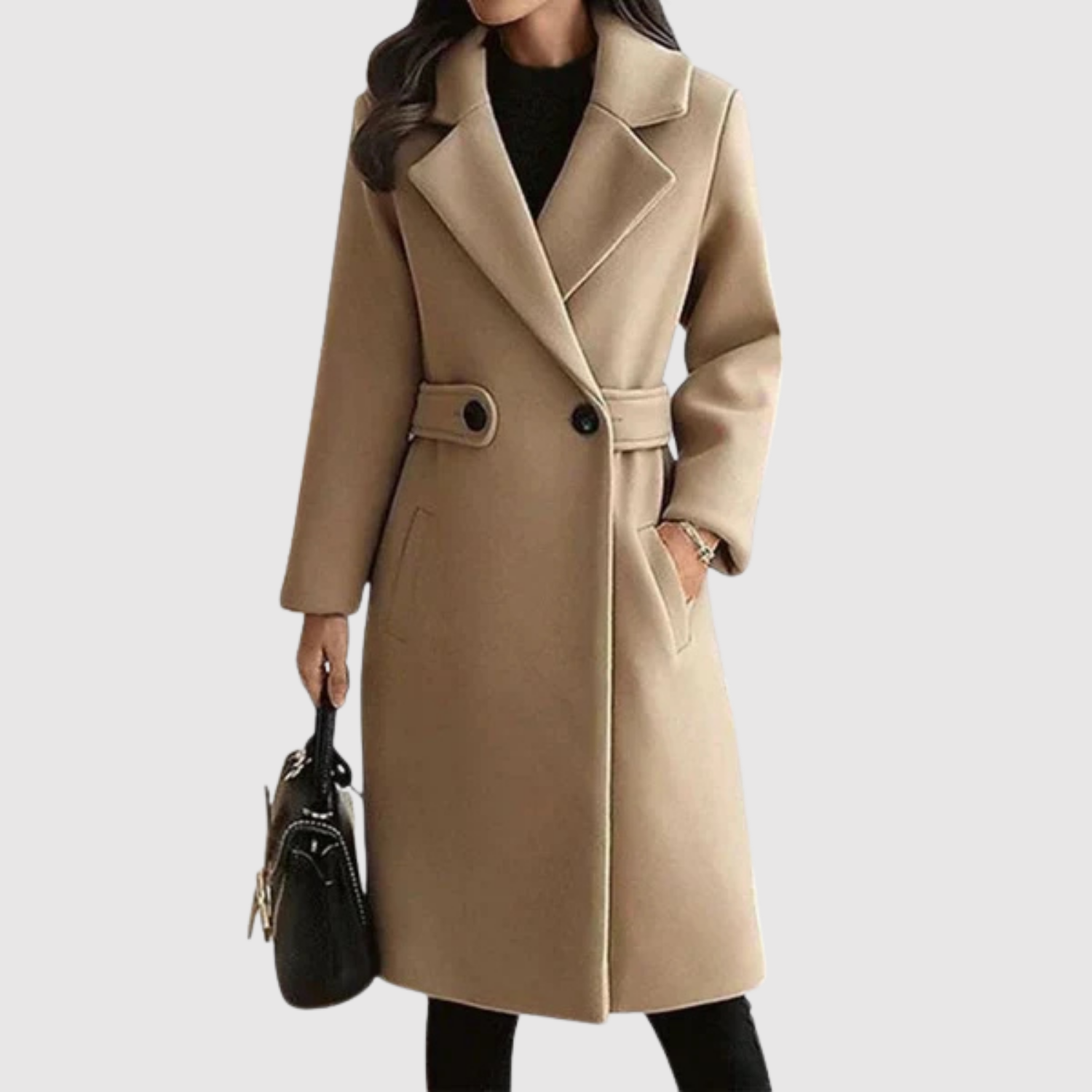 Това дълго палто е задължително за всеки гардероб. С класическия си дизайн, прецизно кроене и двуредно закопчаване, то придава изискан вид, който е идеален както за офиса, така и за по-формални поводи.