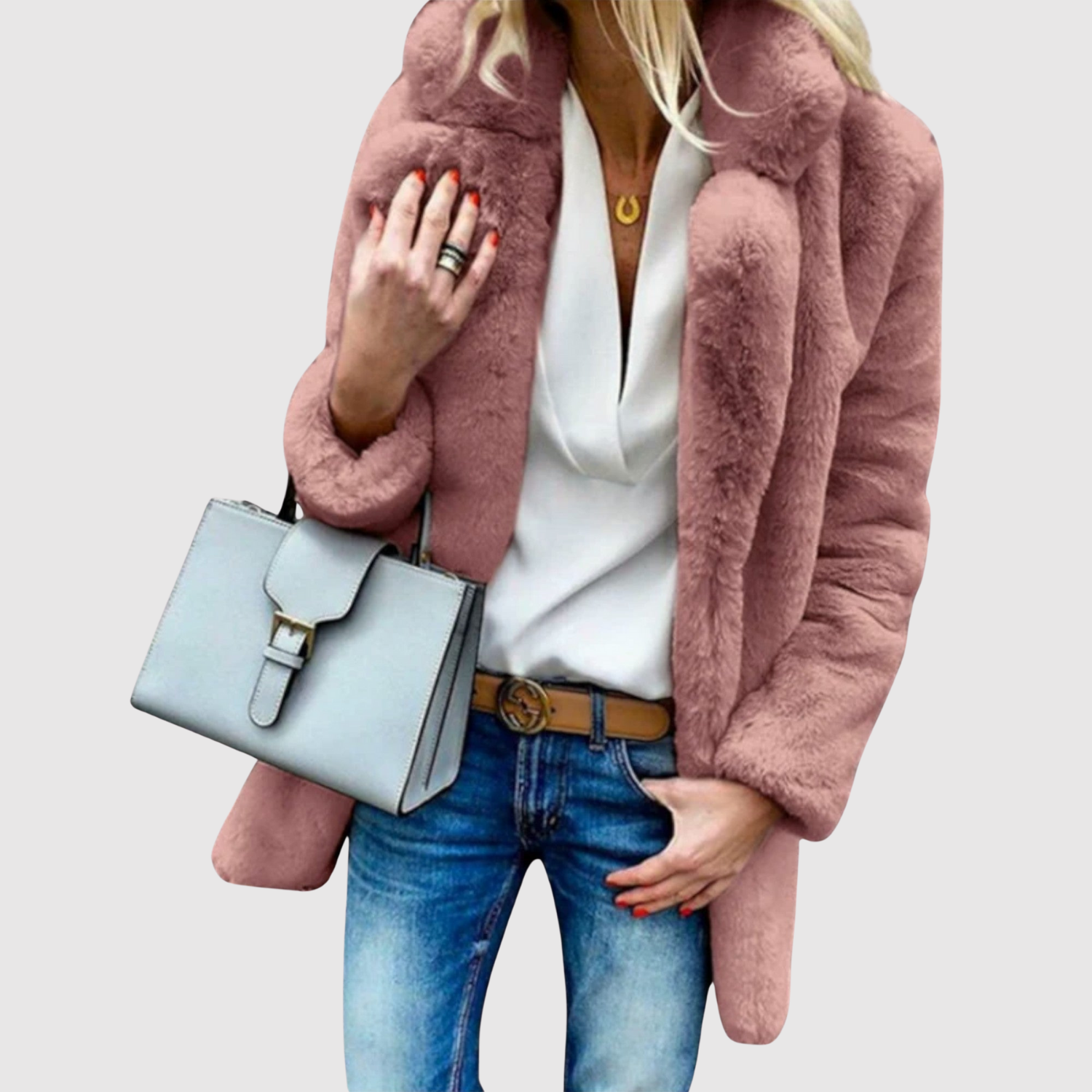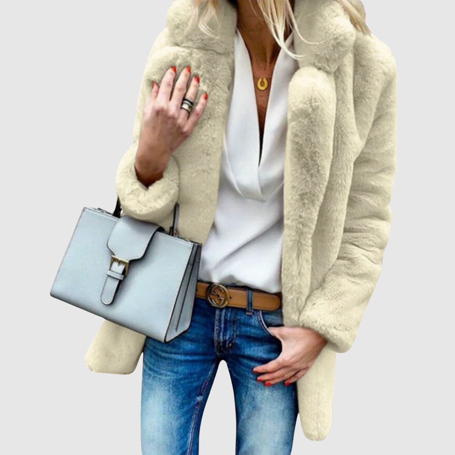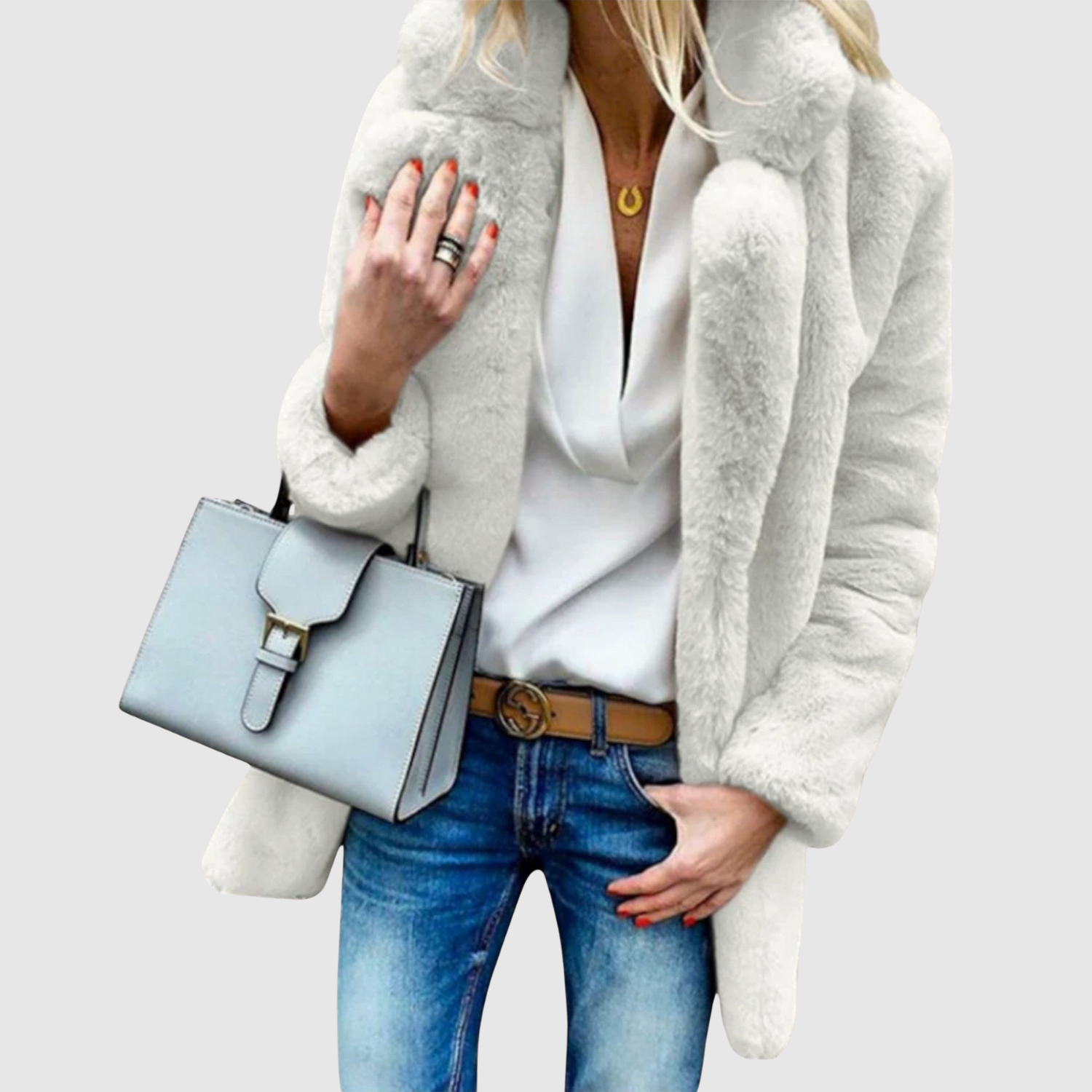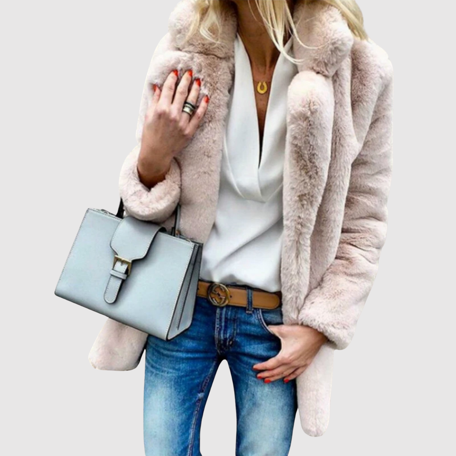 Това късо палто от изкуствена козина е перфектно за комбиниране на стил и комфорт. То има модерен кройка, която придава изискан вид, докато меката текстура те държи топло в хладни дни. Идеално е както за ежедневна употреба, така и за по-елегантни поводи.