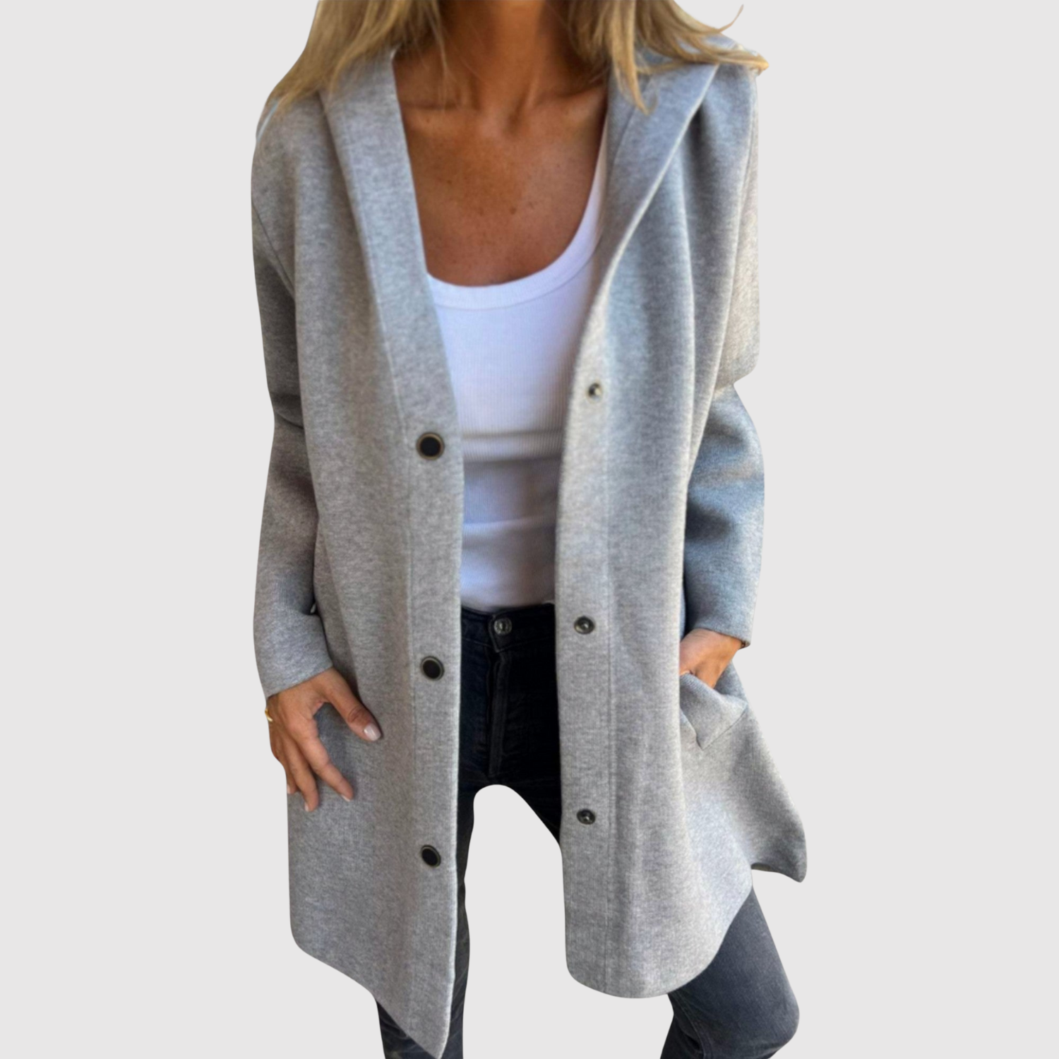 Тази лека якета с трикотажен вид е универсален избор за всеки ден. Със своето меко материал, свободна кройка и класическо закопчаване с копчета, тя придава неусложнен, но стилен вид. Идеална за преходни периоди или като допълнителен слой в хладни вечери.