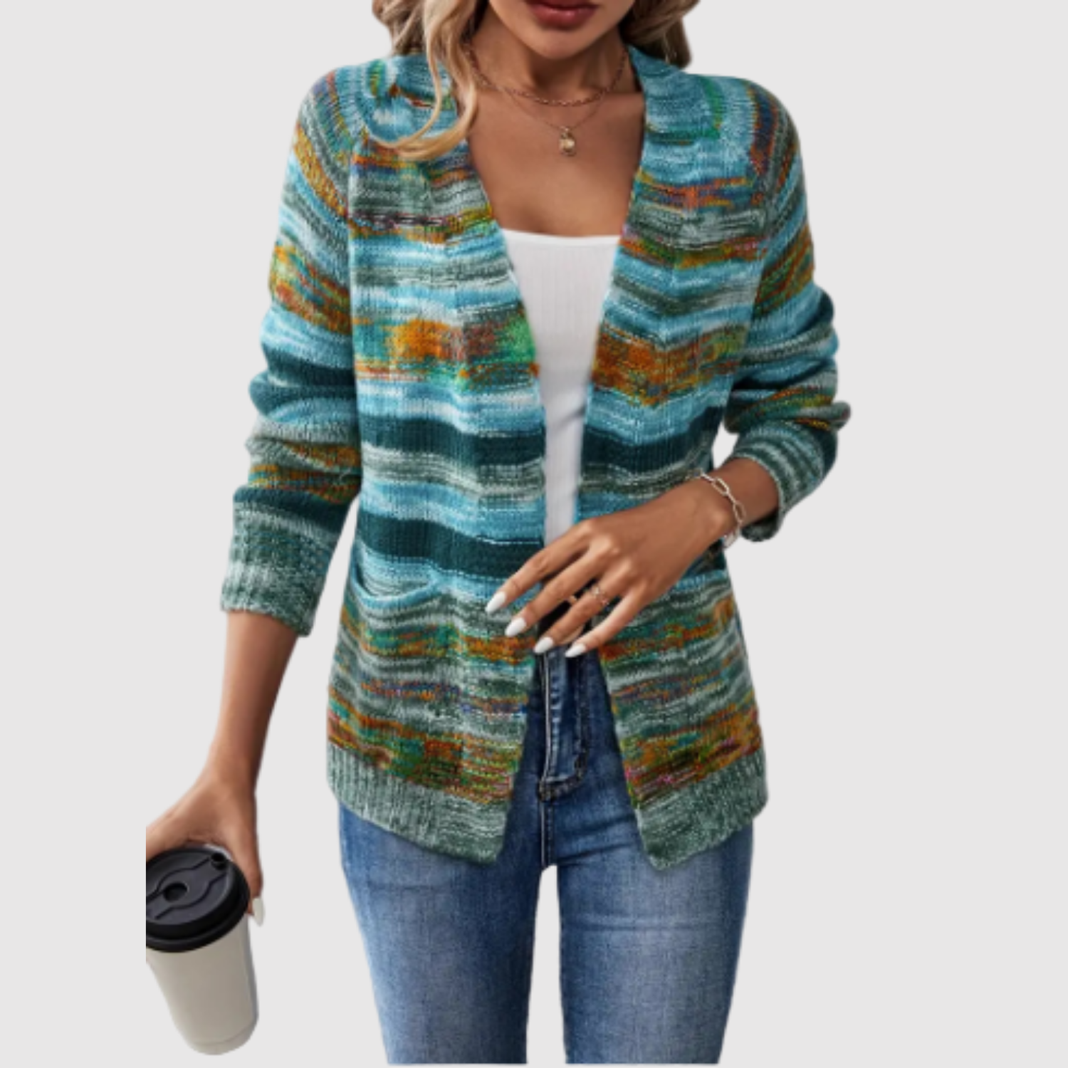 Този кардиган комбинира лекота и комфорт с ярък, многоцветен дизайн. Той е перфектен за създаване на свеж и уникален вид, независимо дали го носите всеки ден или като акцент в облеклото.