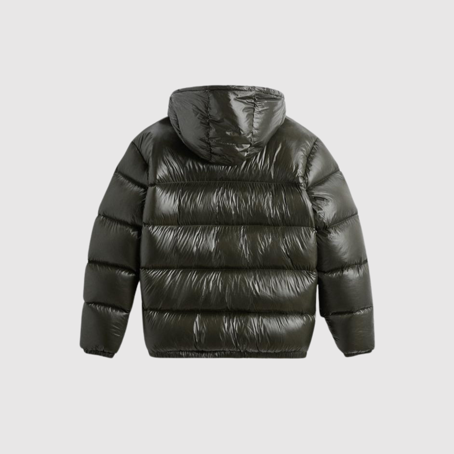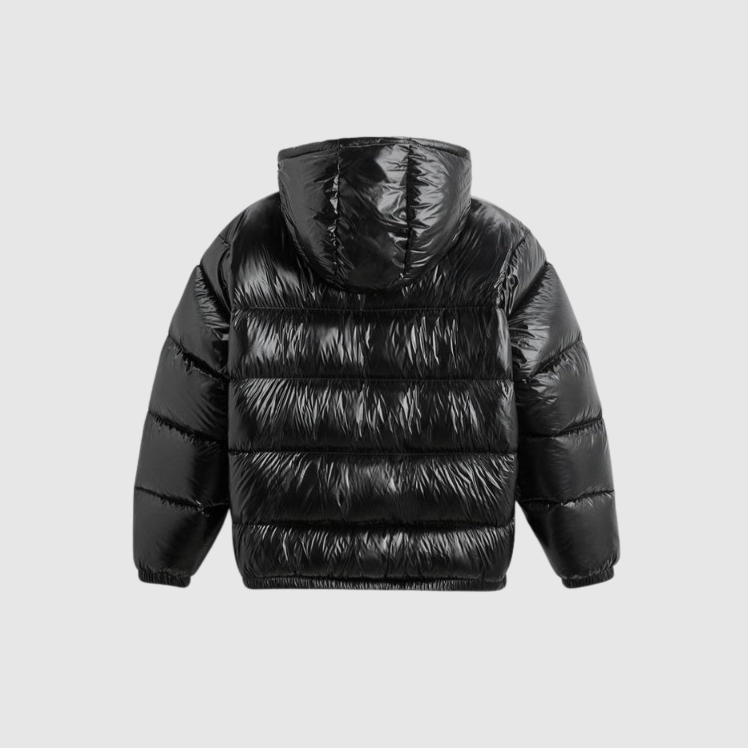 Тази топло подплатена якета комбинира елегантен дизайн с максимална функционалност. Плътната изолация и регулируемата качулка осигуряват оптимална защита от студа, докато гладката повърхност и минималистичната кройка придават модерен, градски вид.