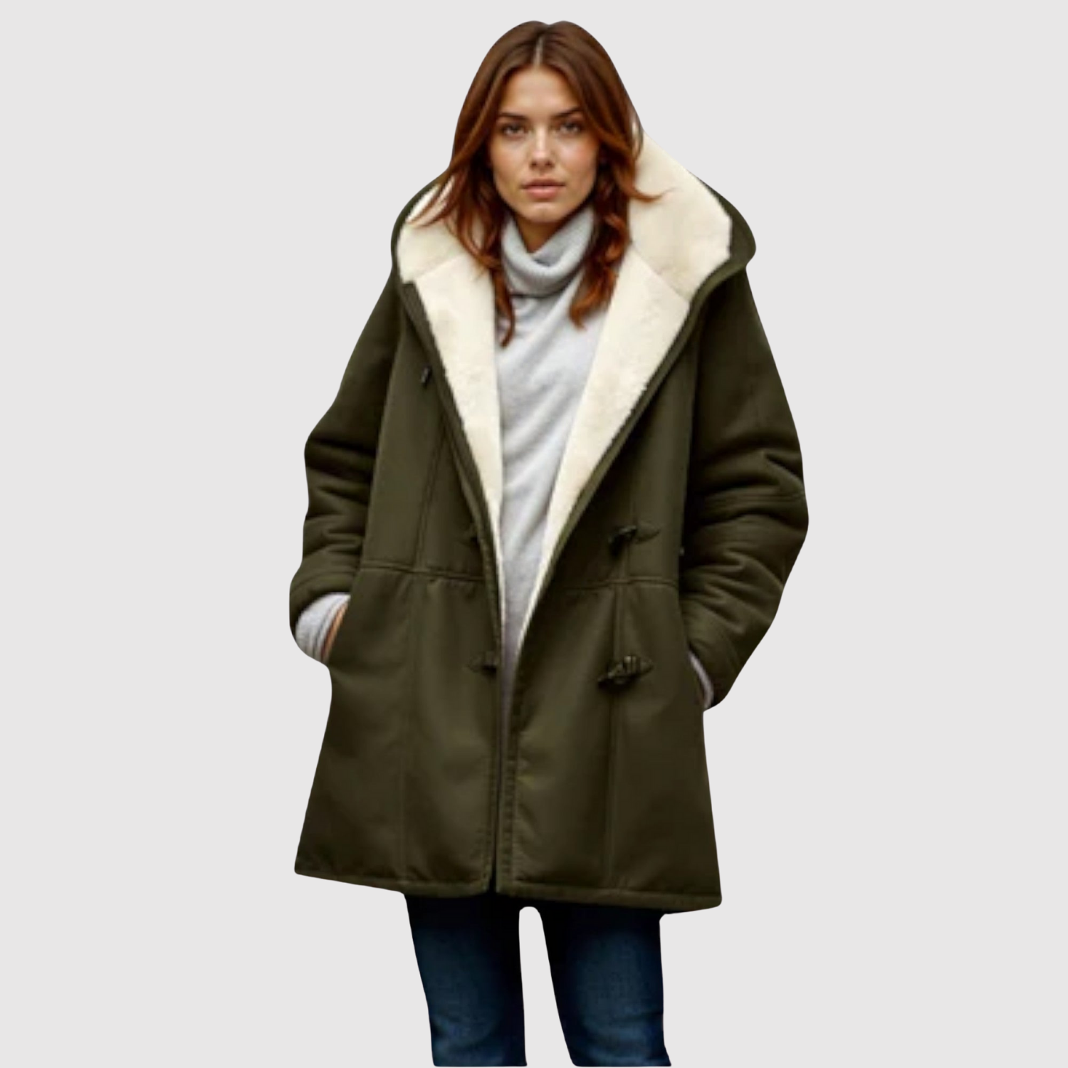 Това oversized зимно яке има забележима, контрастна яка от изкуствена кожа, която придава на визията луксозен привкус. Перфектно за вас, които искате и комфорт, и стилно излъчване.