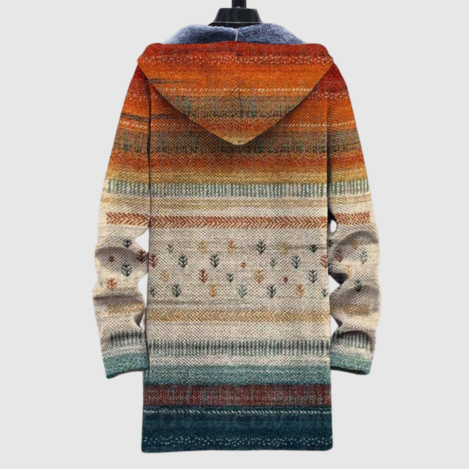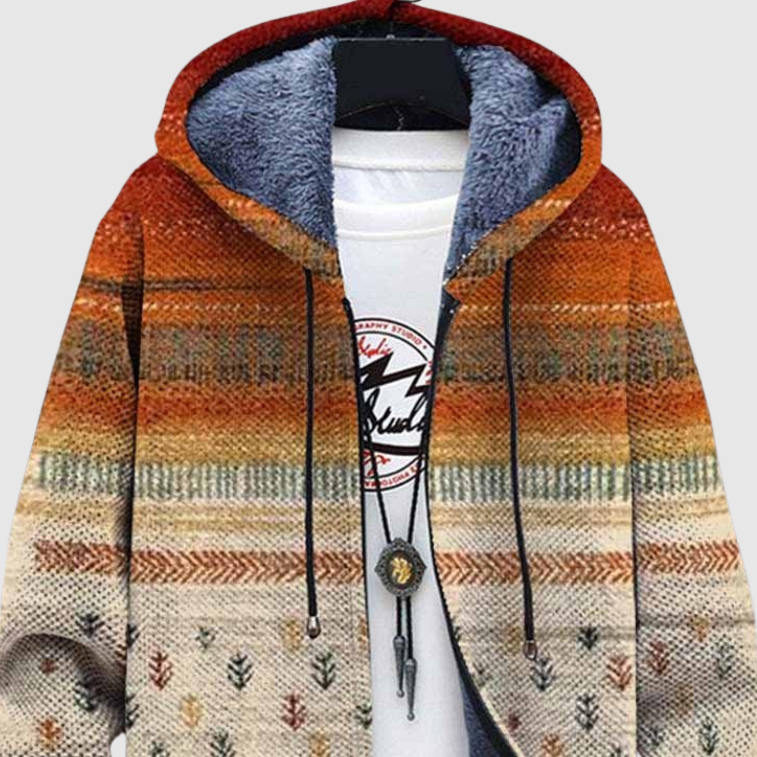 Тази худи съчетава топли нюанси и деликатен мотив, който подчертава спокоен и модерен стил. Меката подплата осигурява комфорт в хладни дни, докато цветният дизайн добавя характер на вашето облекло.