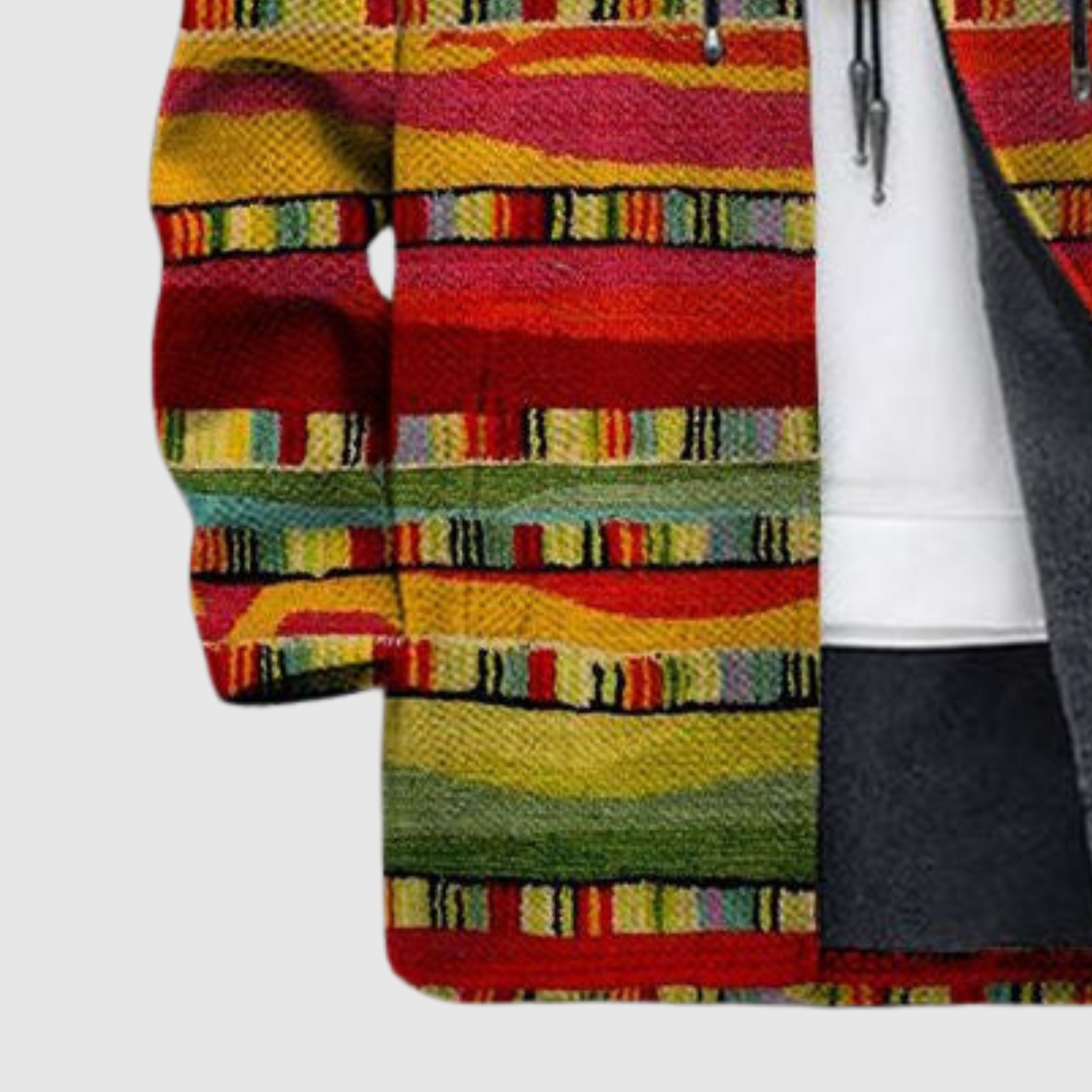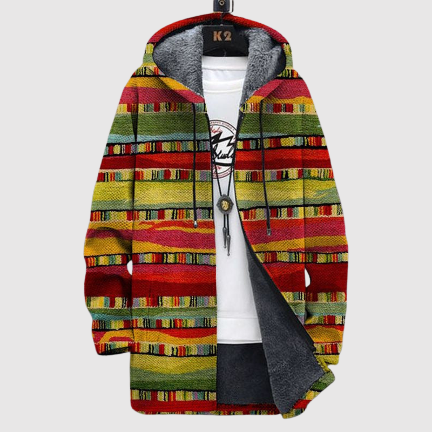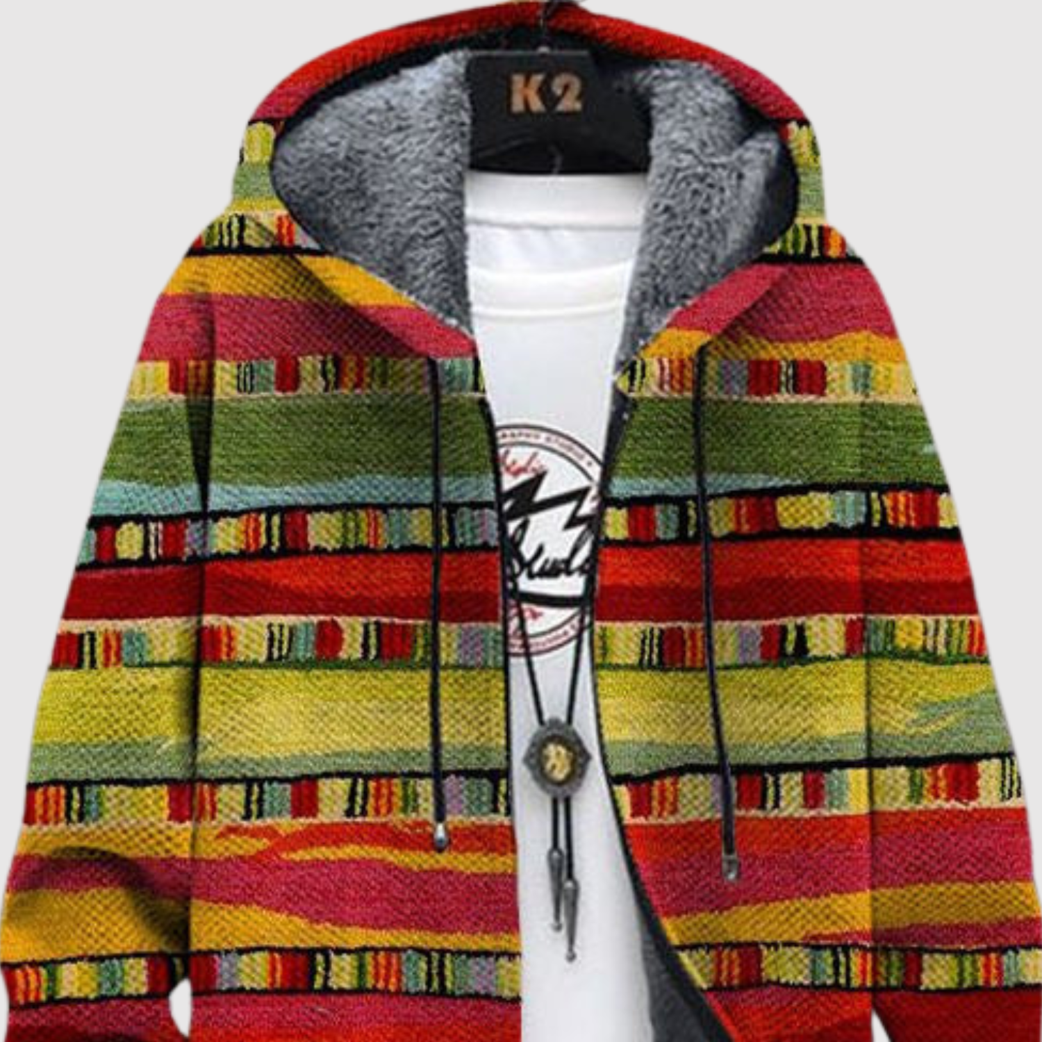 Тази худи комбинира етнически вдъхновени линии и топли червени и жълти нюанси в хармоничен дизайн. Меката вътрешна облицовка и удобната кройка я правят перфектна за ежедневна употреба, където стилът и комфортът вървят ръка за ръка.