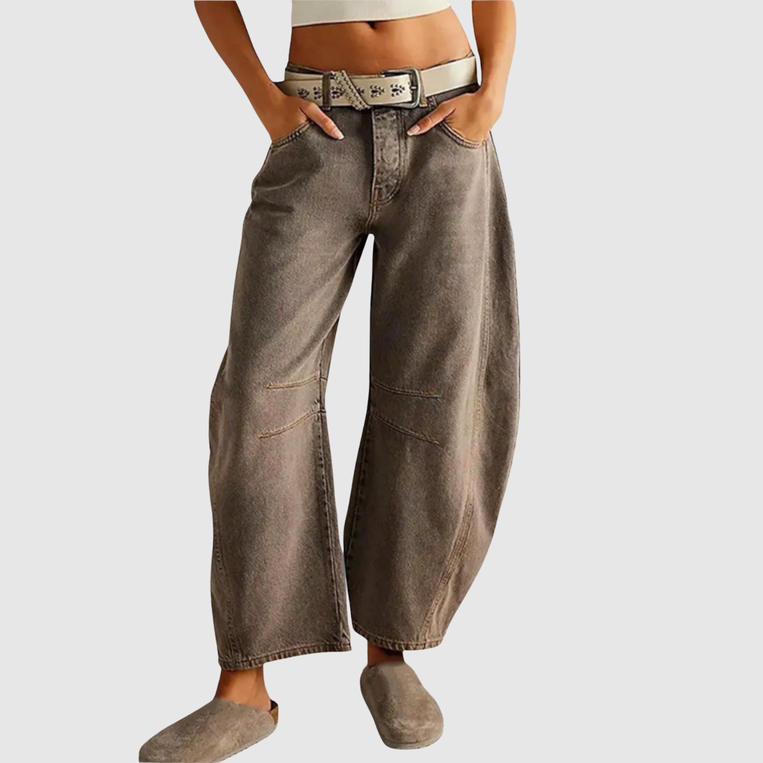 Тези дънки с широк крачол са проектирани да придадат модерен и стилен вид, без да се компрометира комфортът. Със своята свободна кройка и модна силуета, те са перфектни както за ежедневна носене, така и за по-елегантни аутфити.