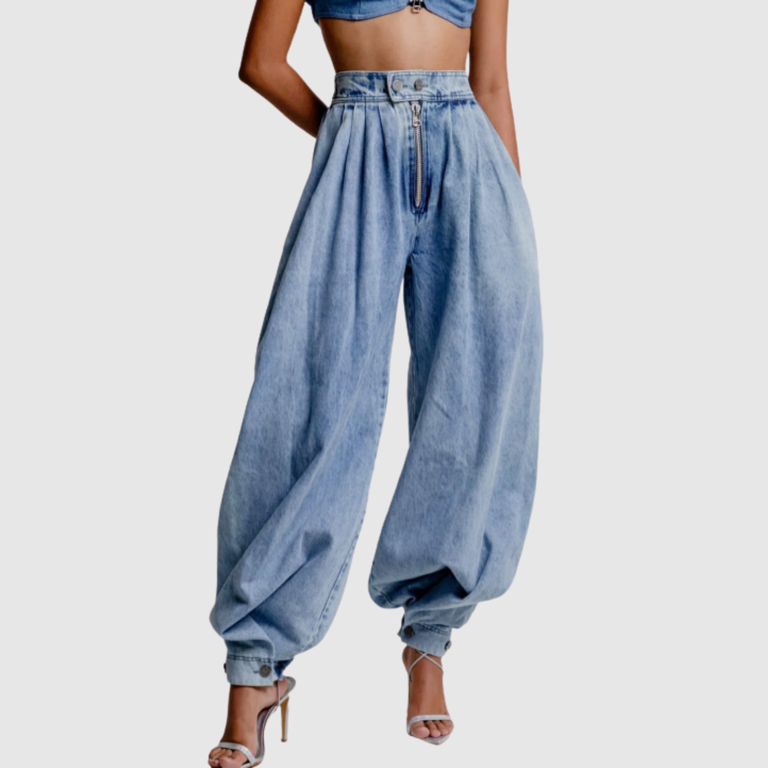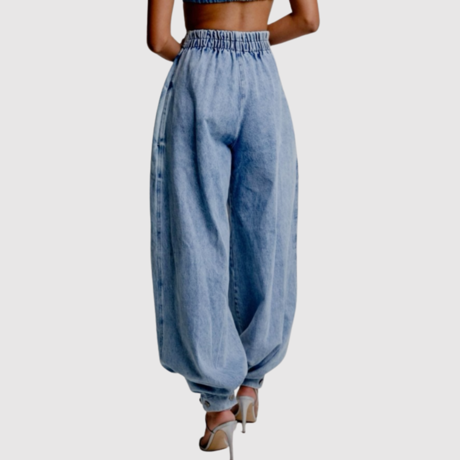Тези дънки с широк силует са проектирани за максимален комфорт, без да правят компромиси със стила. Еластичният колан ги прави лесни за настройка и перфектни за ежедневна употреба.
