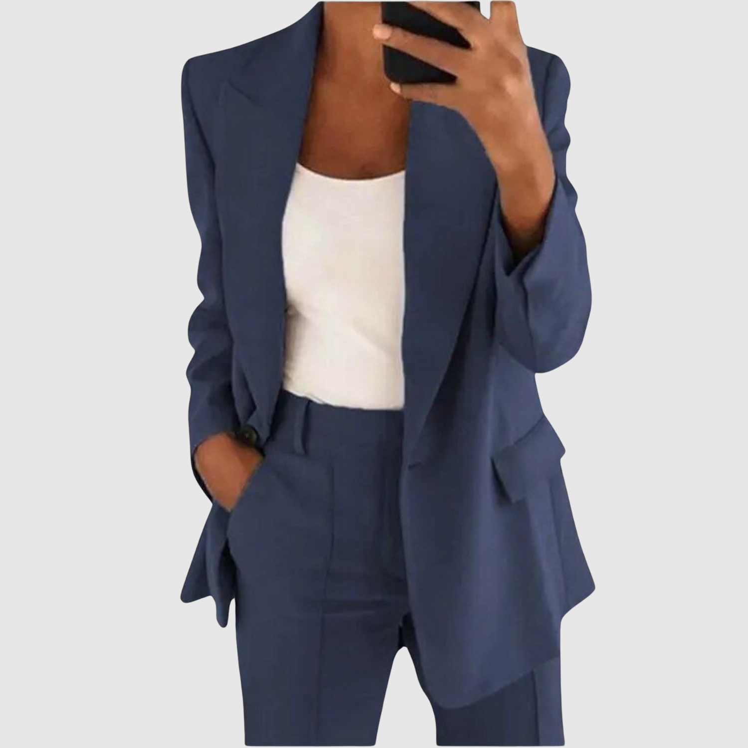 Този гащеризон комбинира класическо кроене с модерен акцент. С чистия си дизайн и удобна кройка е перфектен за офис, срещи или формални събития. Тъканта пада красиво и придава елегантен, стилен вид.