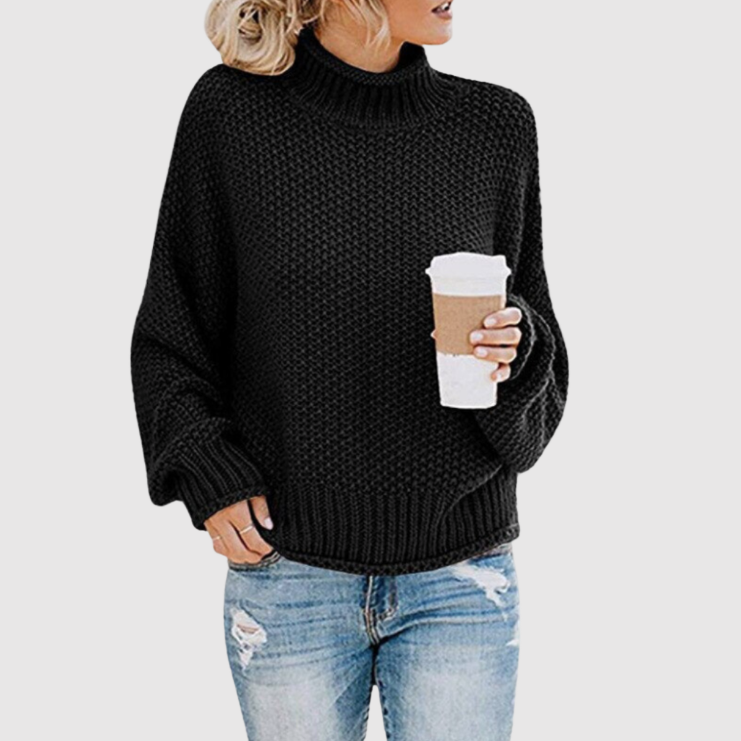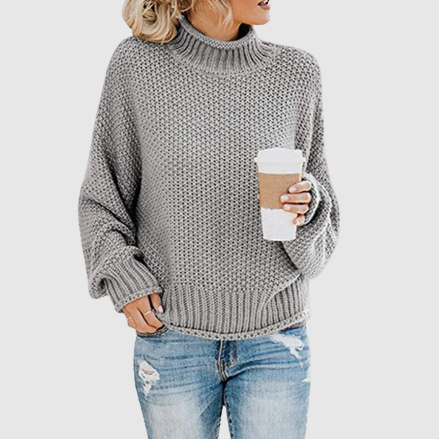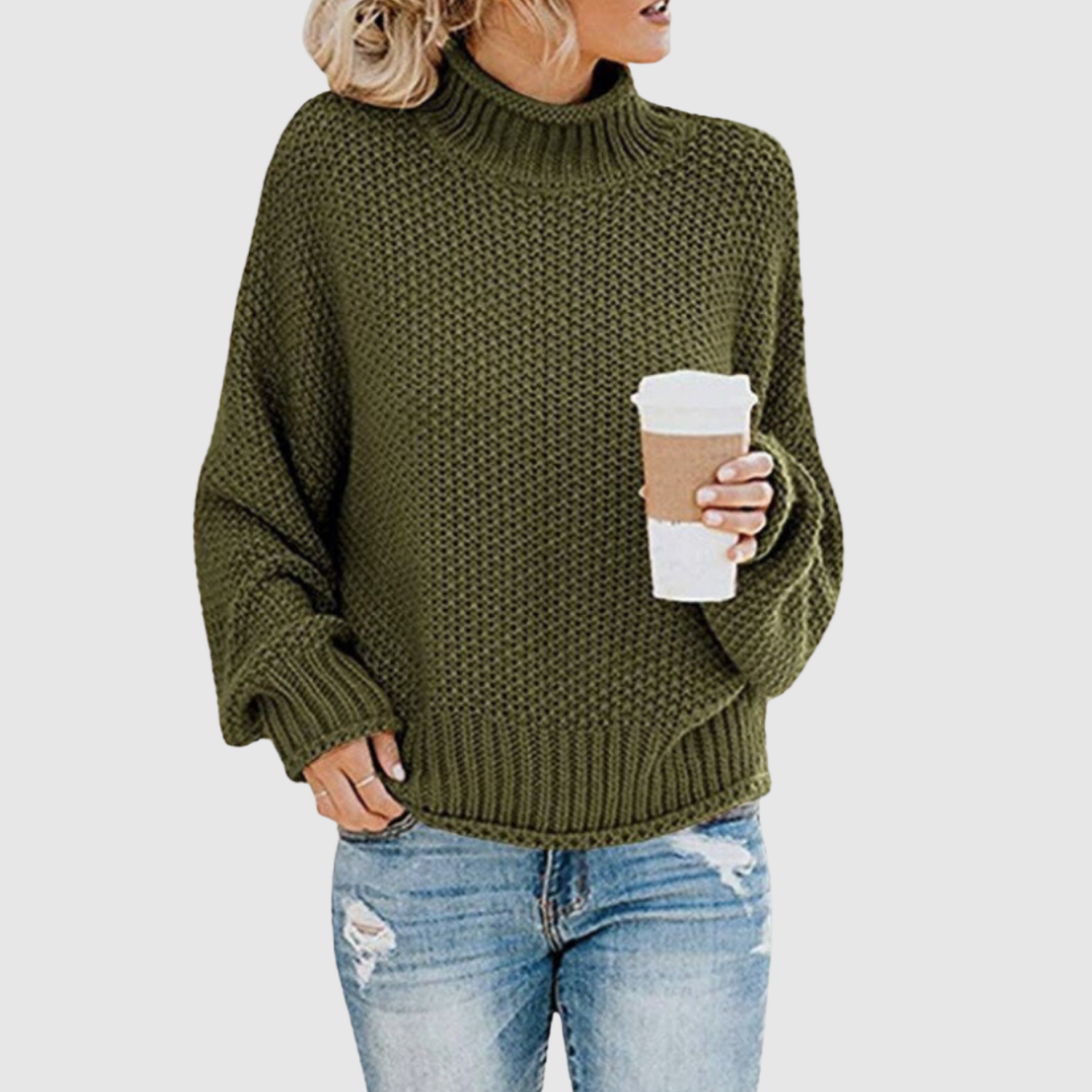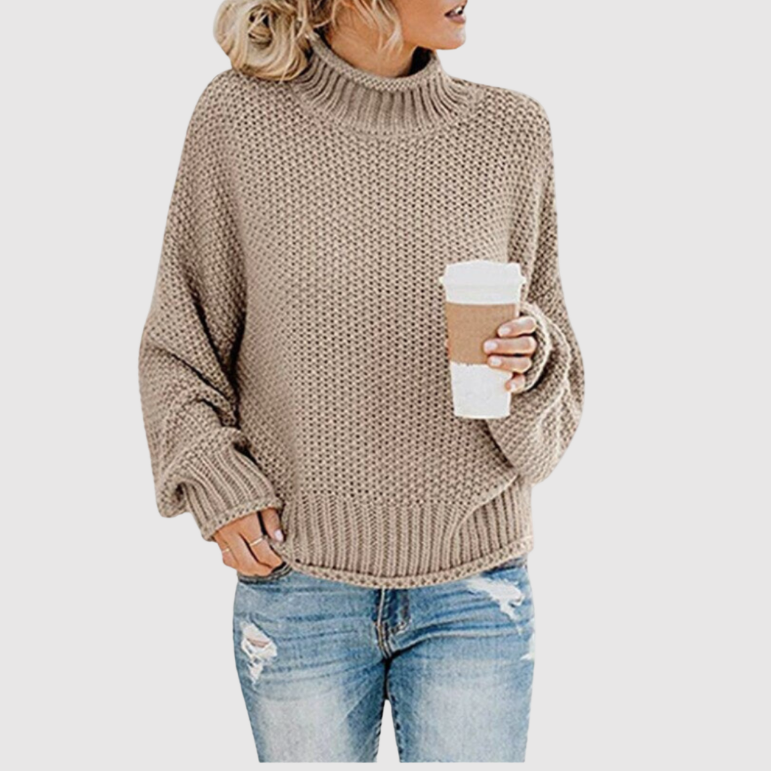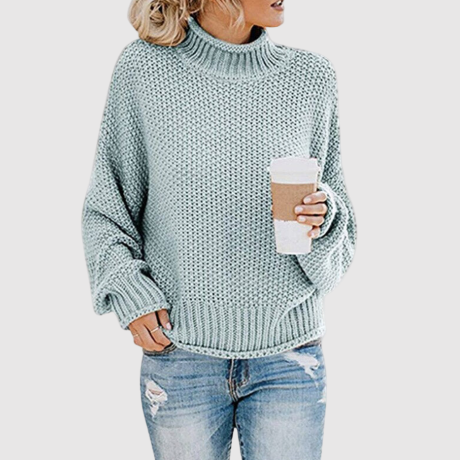 Модерен пуловер с висока яка, който придава стилен и изискан вид. Меката текстура го прави удобен за носене през целия ден. Идеален както за ежедневна употреба, така и за уютни вечери.