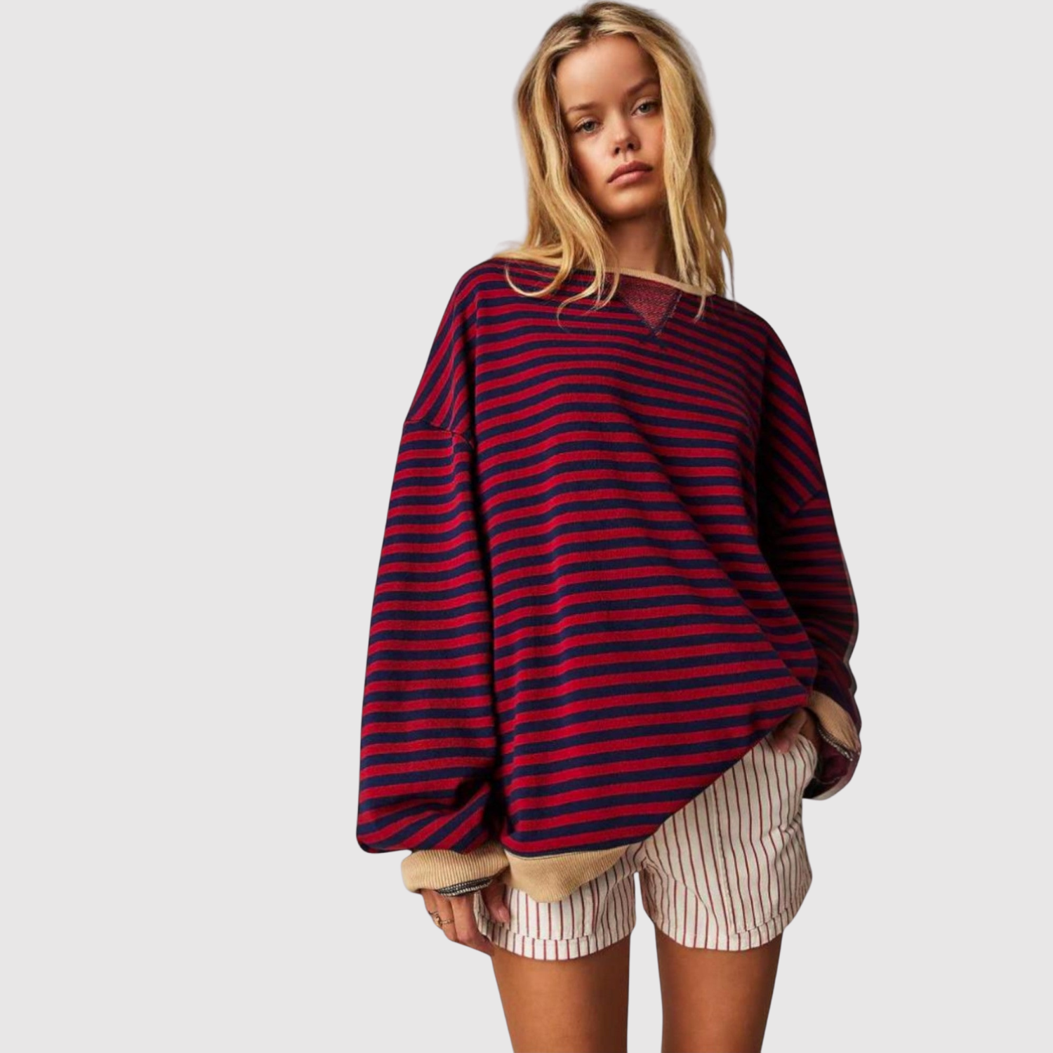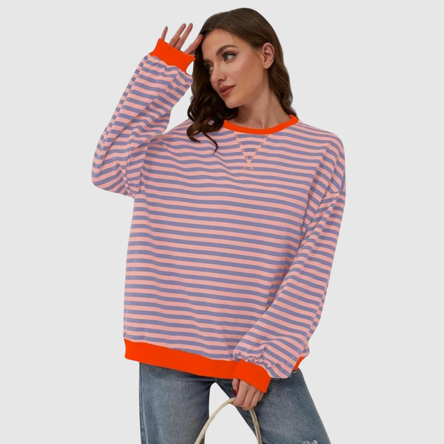 Този райетен пуловер придава игрив и модерен вид, перфектен за ежедневието. Мекото качество осигурява комфорт, докато свежите контрастни цветове добавят енергия към всяко облекло.