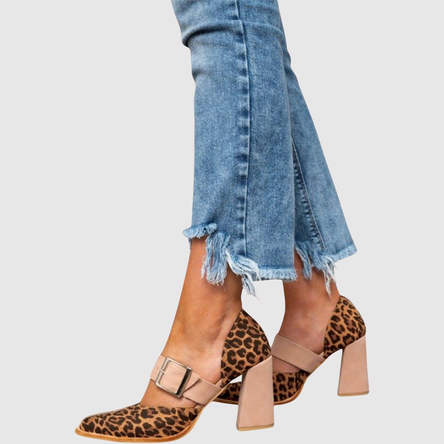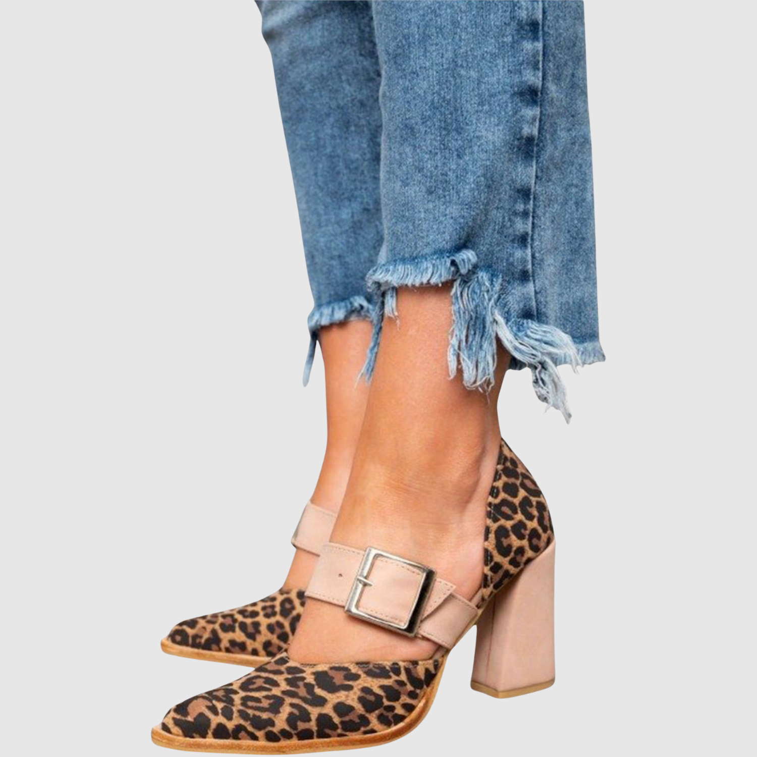 Тези сандали съчетават модерен леопардов принт с надежден блок ток, който осигурява както височина, така и подкрепа. Отворената предна част и регулируемата лента осигуряват привлекателно прилягане, перфектно за ежедневна и вечерна употреба.