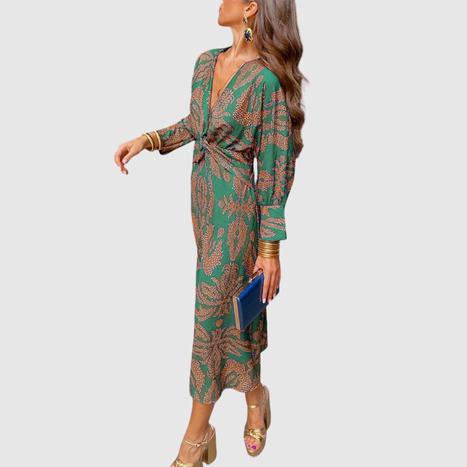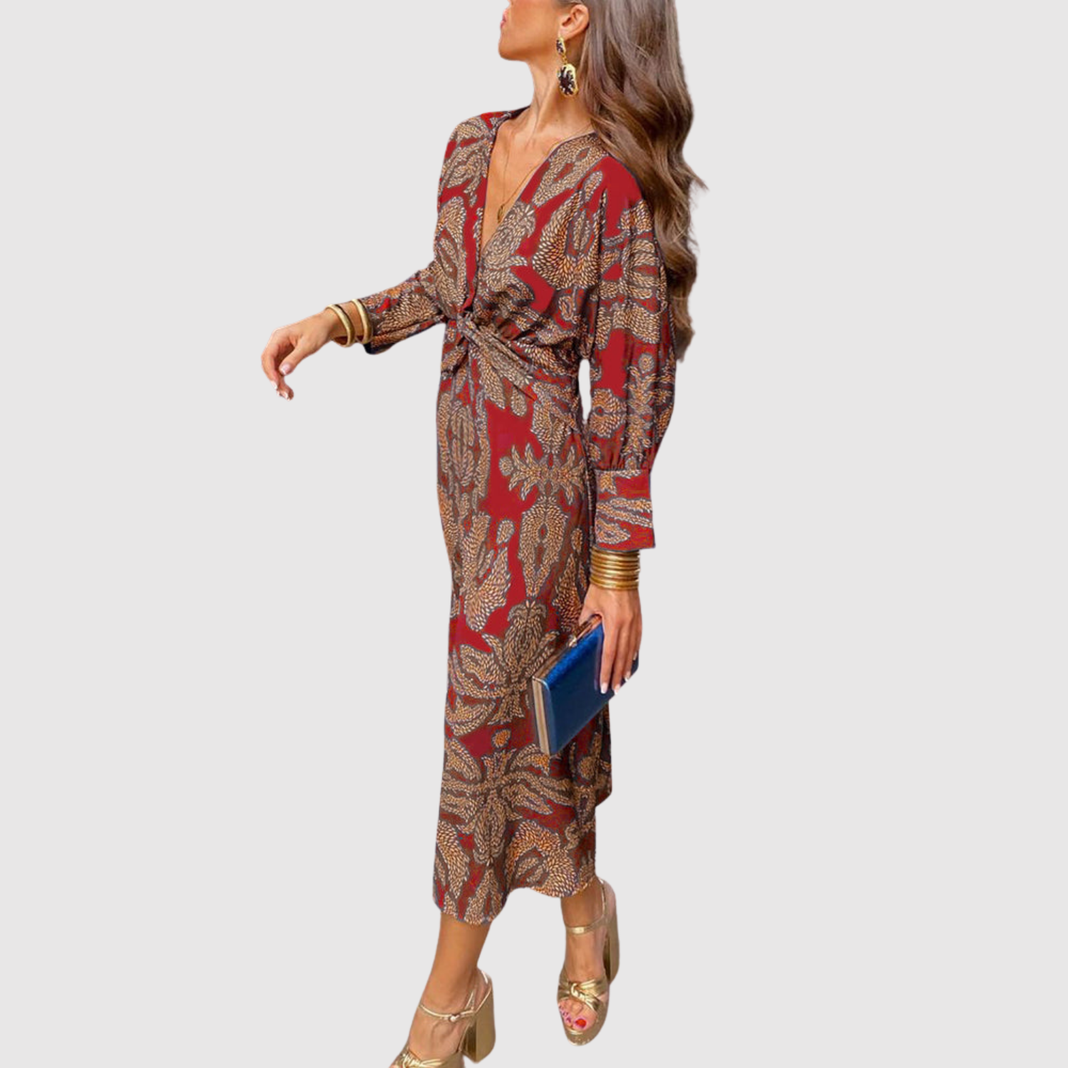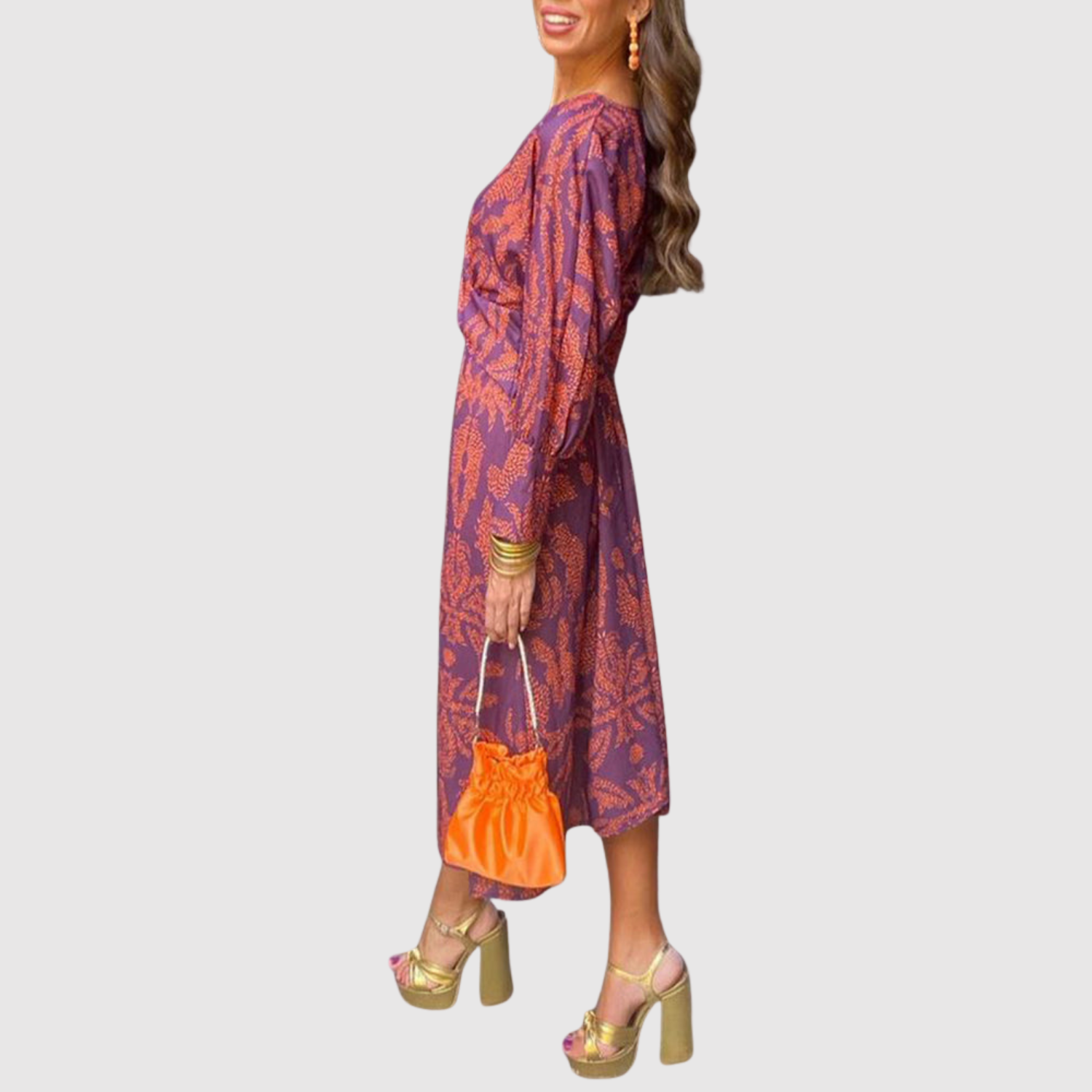 Дълга рокля в бохемски стил с елегантни принтове, свободна кройка и леко падаща материя, която осигурява движение и комфорт. Идеална за ежедневна употреба и специални поводи, когато е необходимо уникално излъчване.
