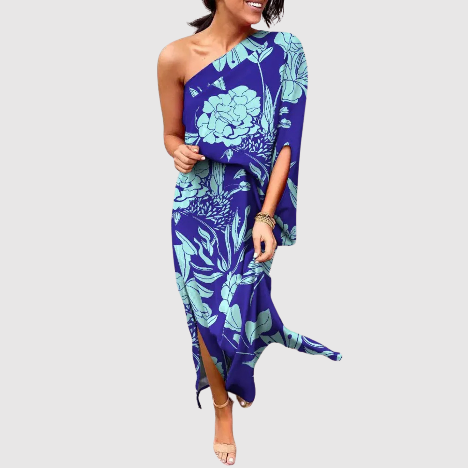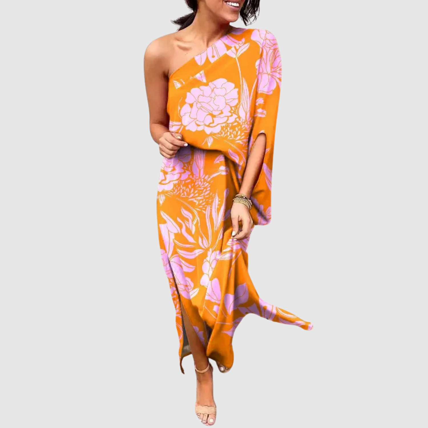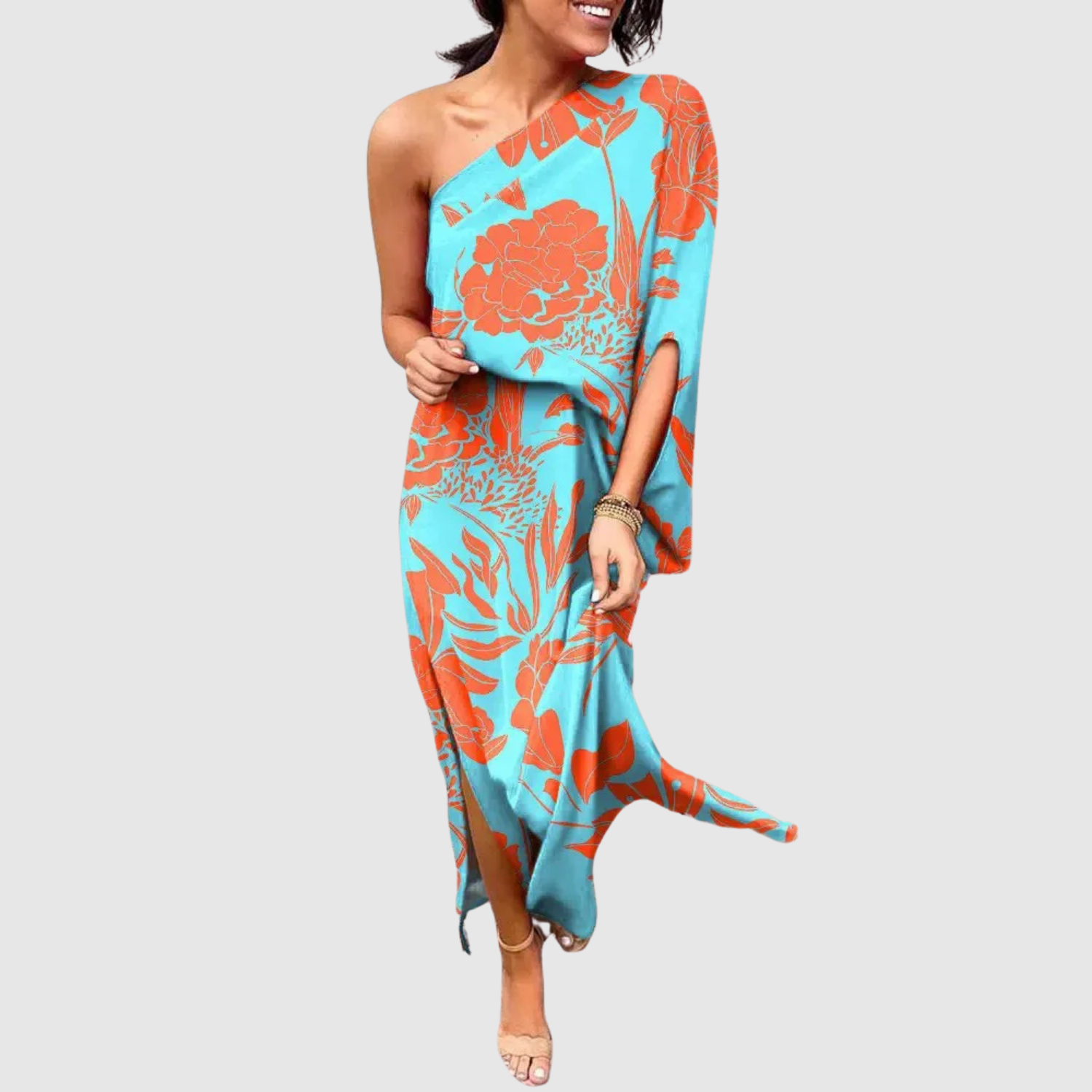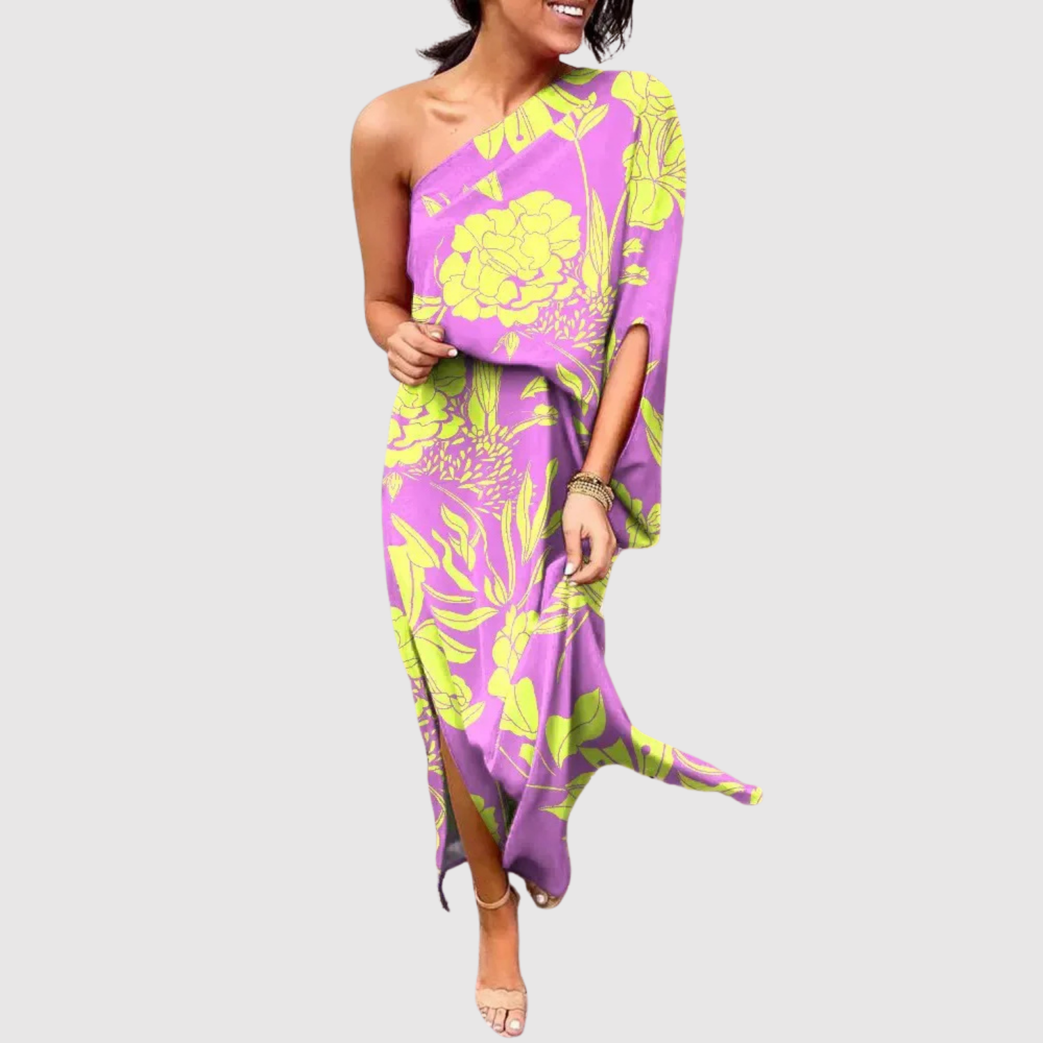 Тази асиметрична рокля комбинира свеж крой с впечатляващ цветен десен. Перфектна за летни партита, дни на плажа или вечер навън, когато искате да добавите щрих от цвят и индивидуалност.