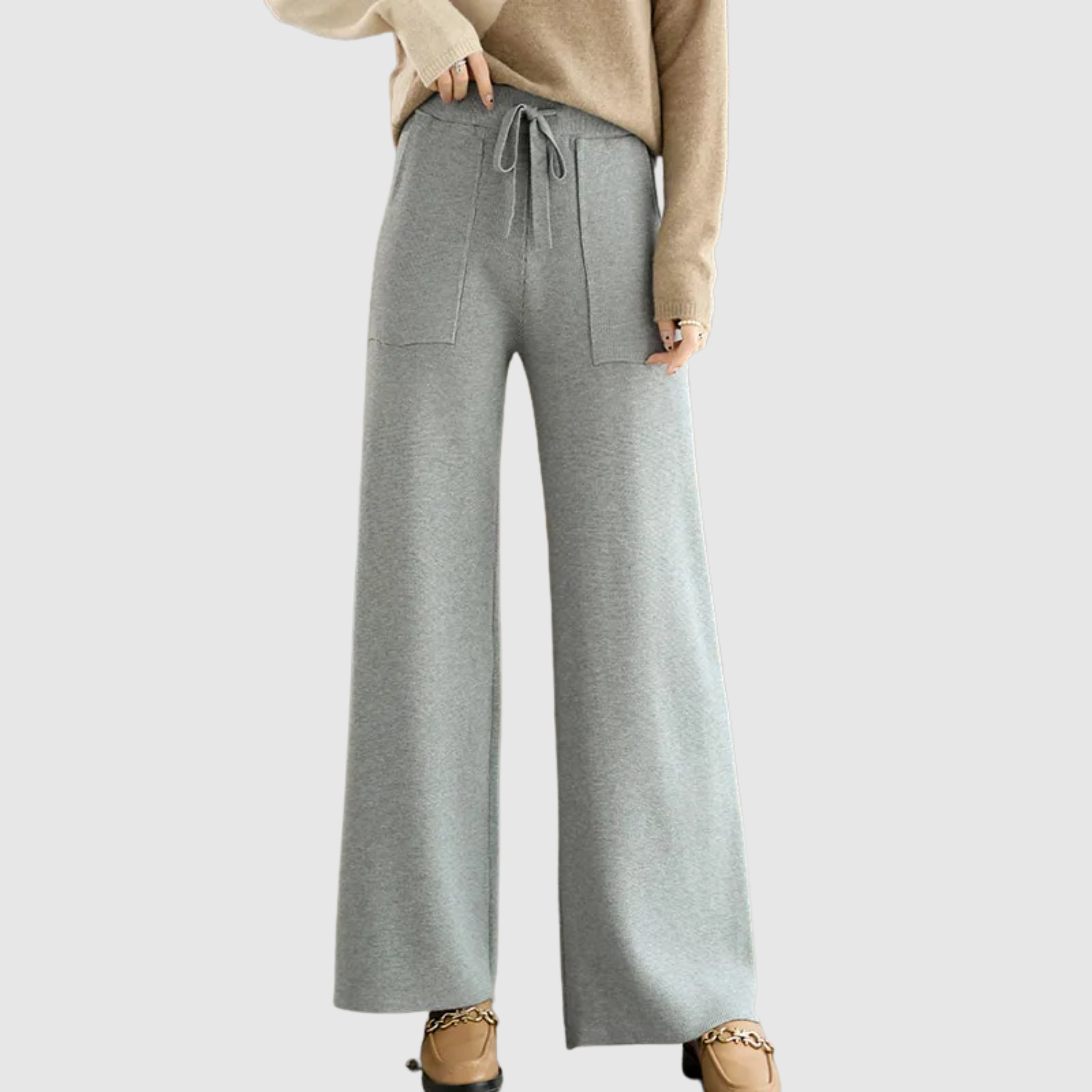 Тези плетени панталони предлагат както комфорт, така и елегантност в ежедневието. Мекото качество и плавната кройка ги правят идеални за неформални, но стилни визии.