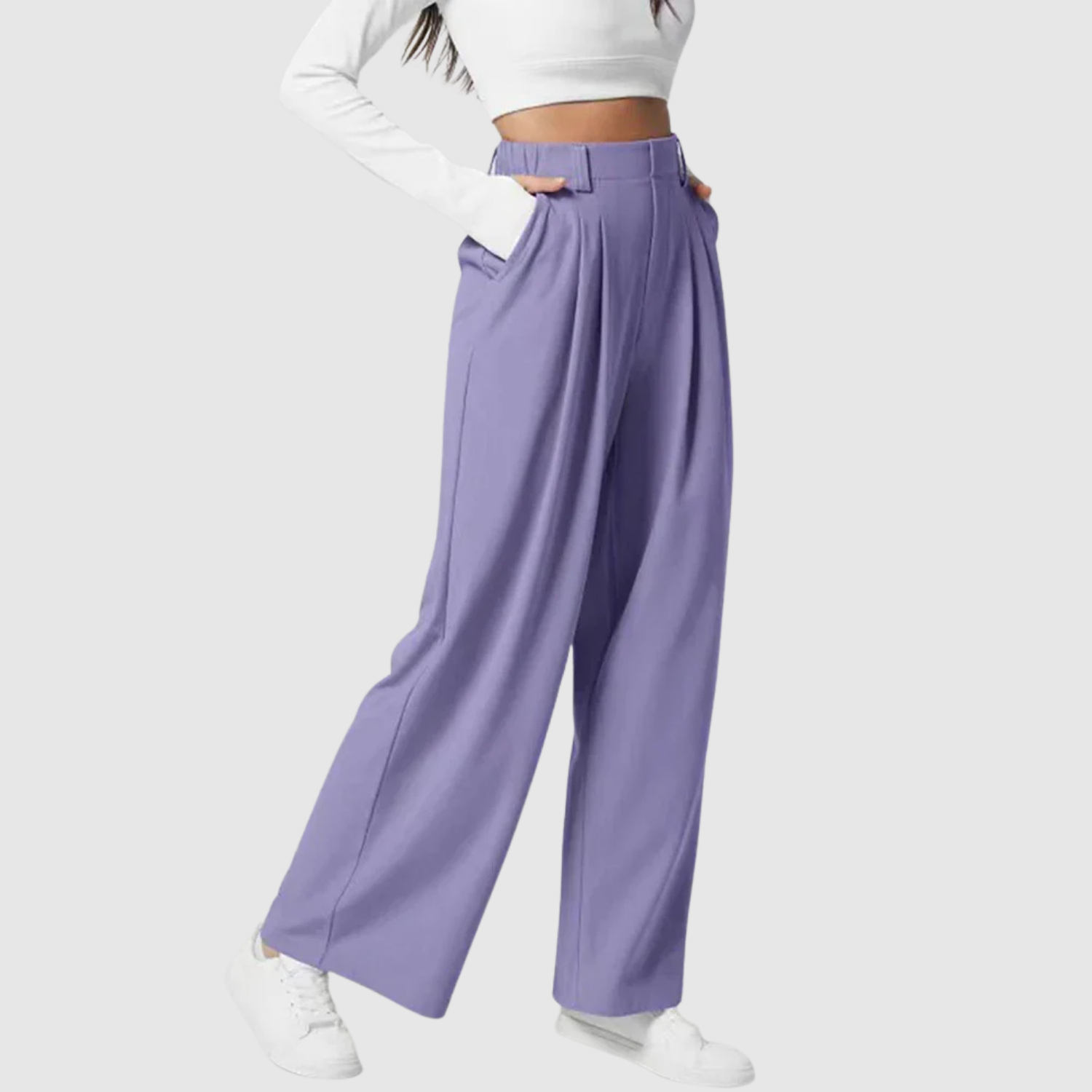 Тези широки панталони от лек плат придават въздушен и модерен вид. Те са перфектни както за ежедневна употреба, така и за поводи, когато искате да съчетаете комфорт с цветен стил.