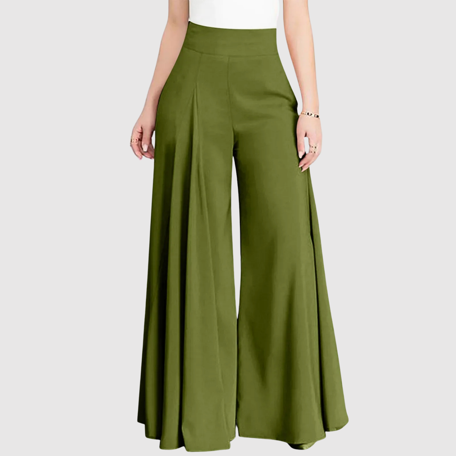 Тези широки панталони са изработени от лек материал, който осигурява свобода на движение и стилно излъчване. Перфектни за горещи дни или за небрежен шик вид.