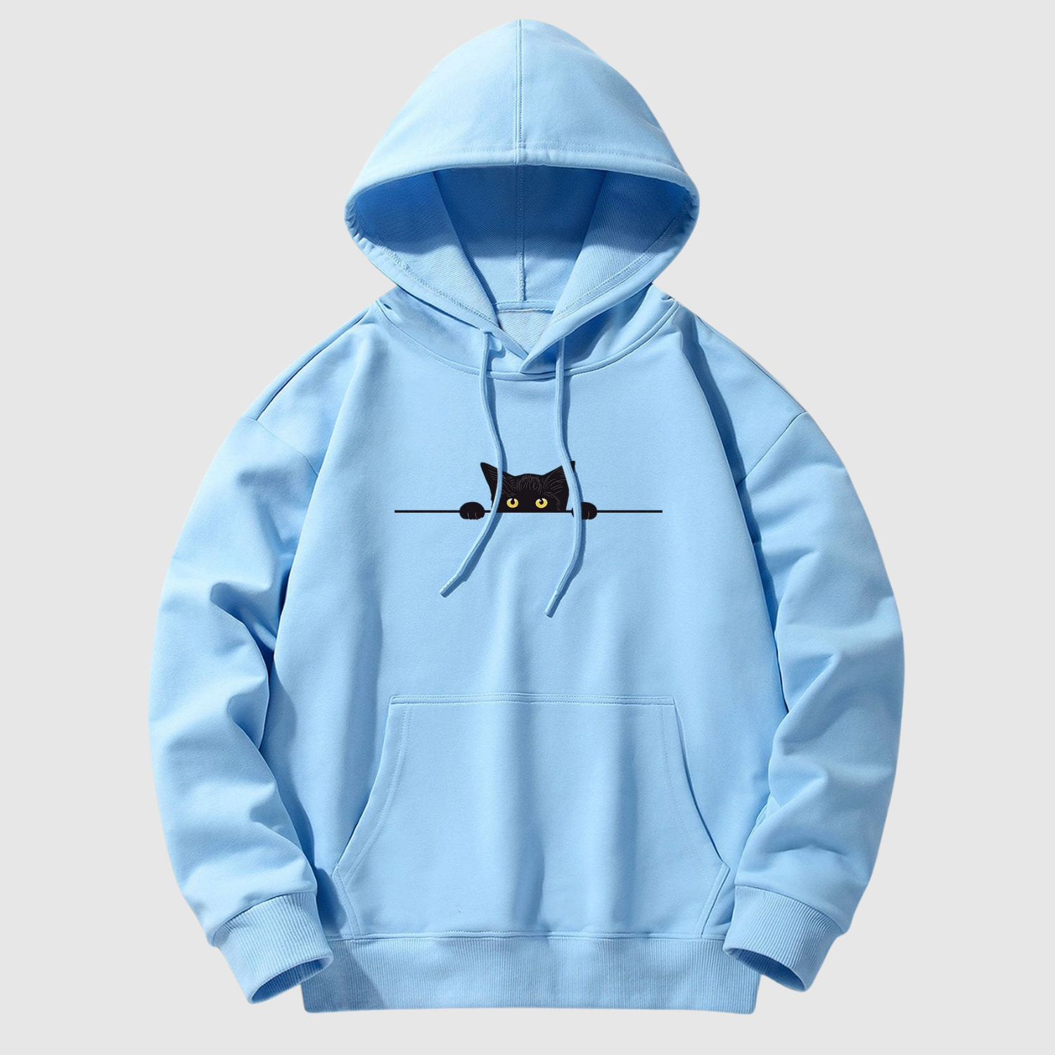 Добавете щипка забавление към гардероба си с нашия стилен худи с котешки принт. Достъпен в живи цветове като розово, сиво, бяло, светлосиньо, червено и още, този суичър комбинира комфорт с уникален дизайн с игрива котка отпред. Изработен от меко, висококачествено платно, той е перфектен за ежедневието или за релаксиращи моменти.