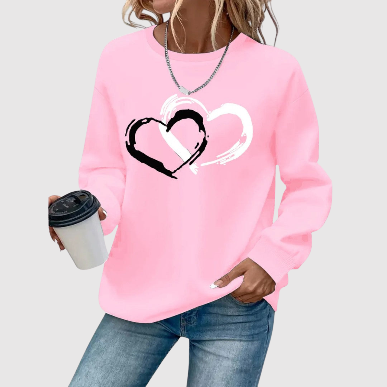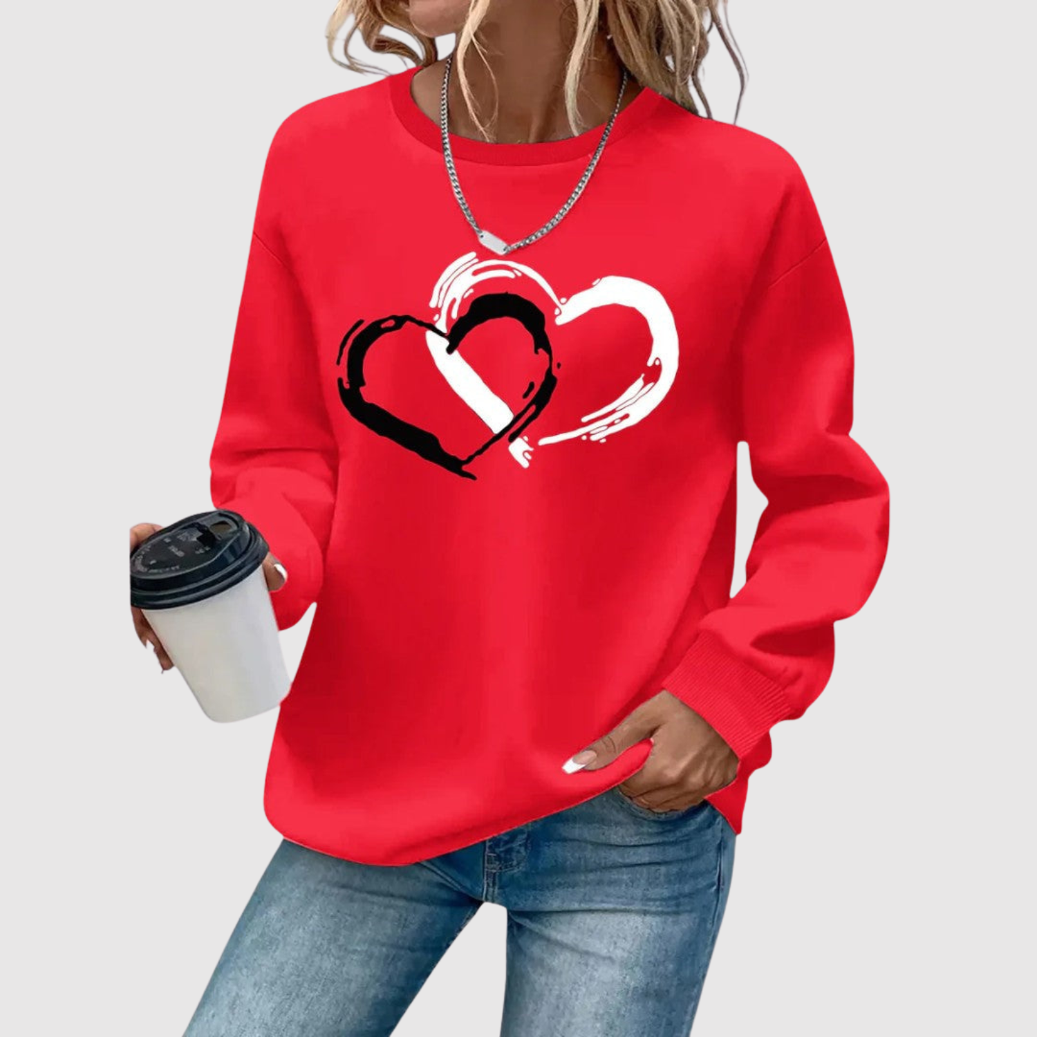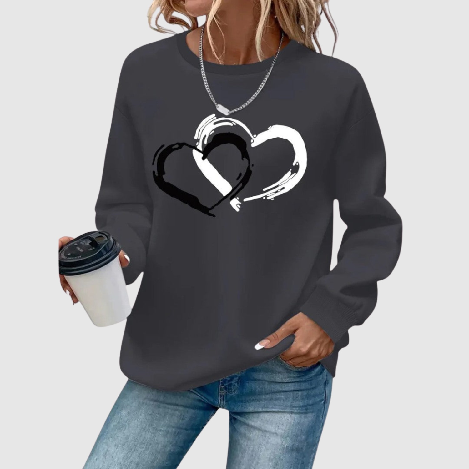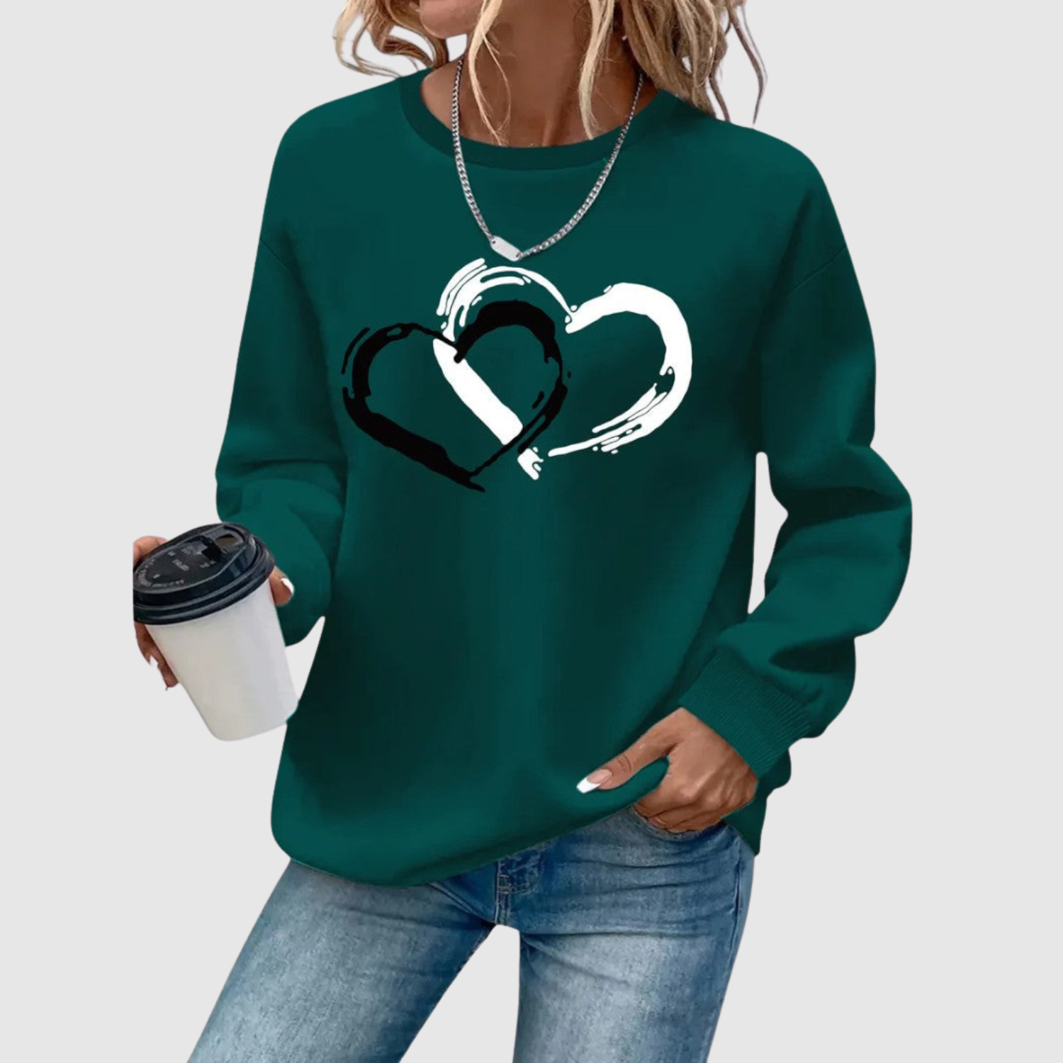 Този суитшърт комбинира неформален комфорт с очарователен принт на сърца. Мекото качество го прави перфектен за ежедневието, докато дизайна придава уникален израз.