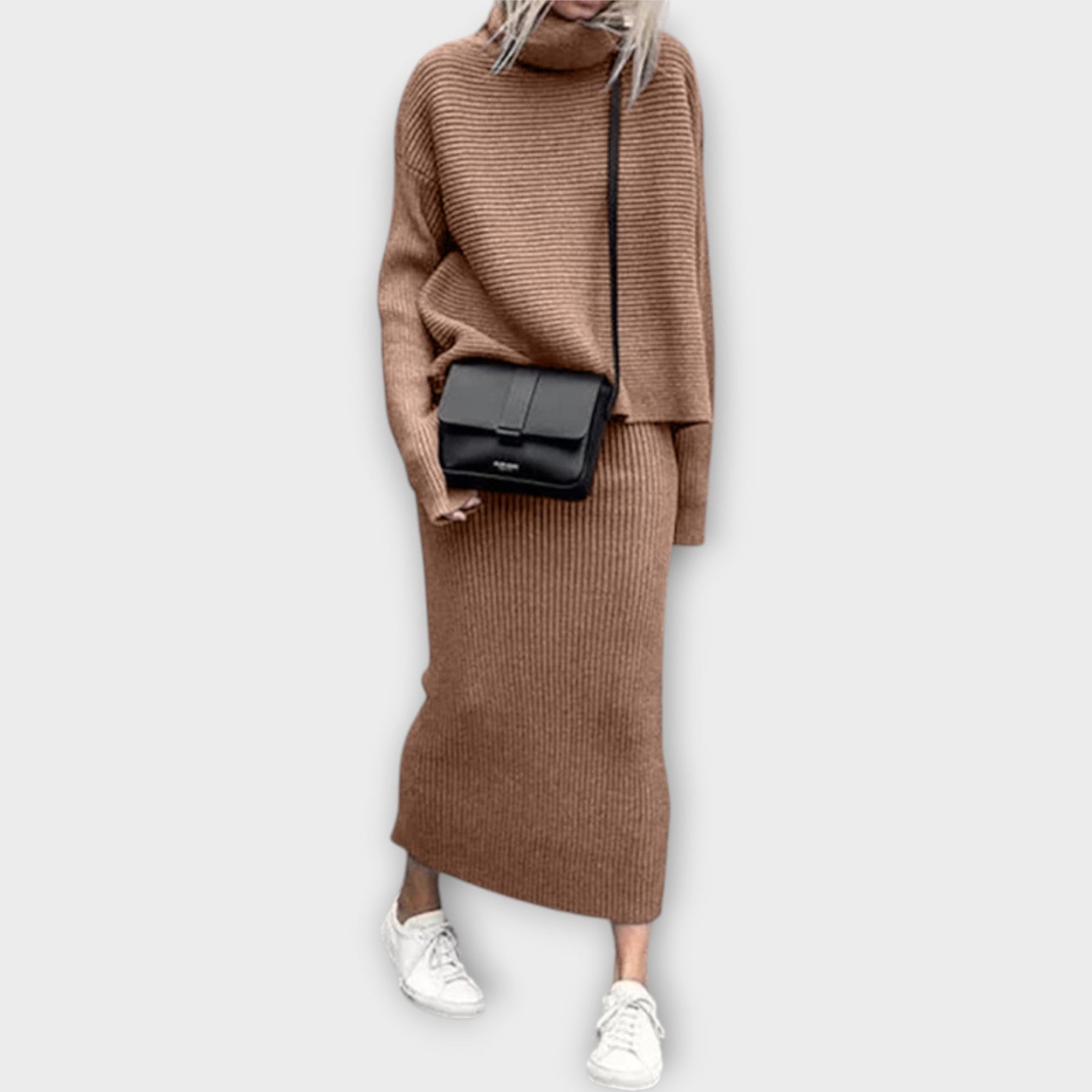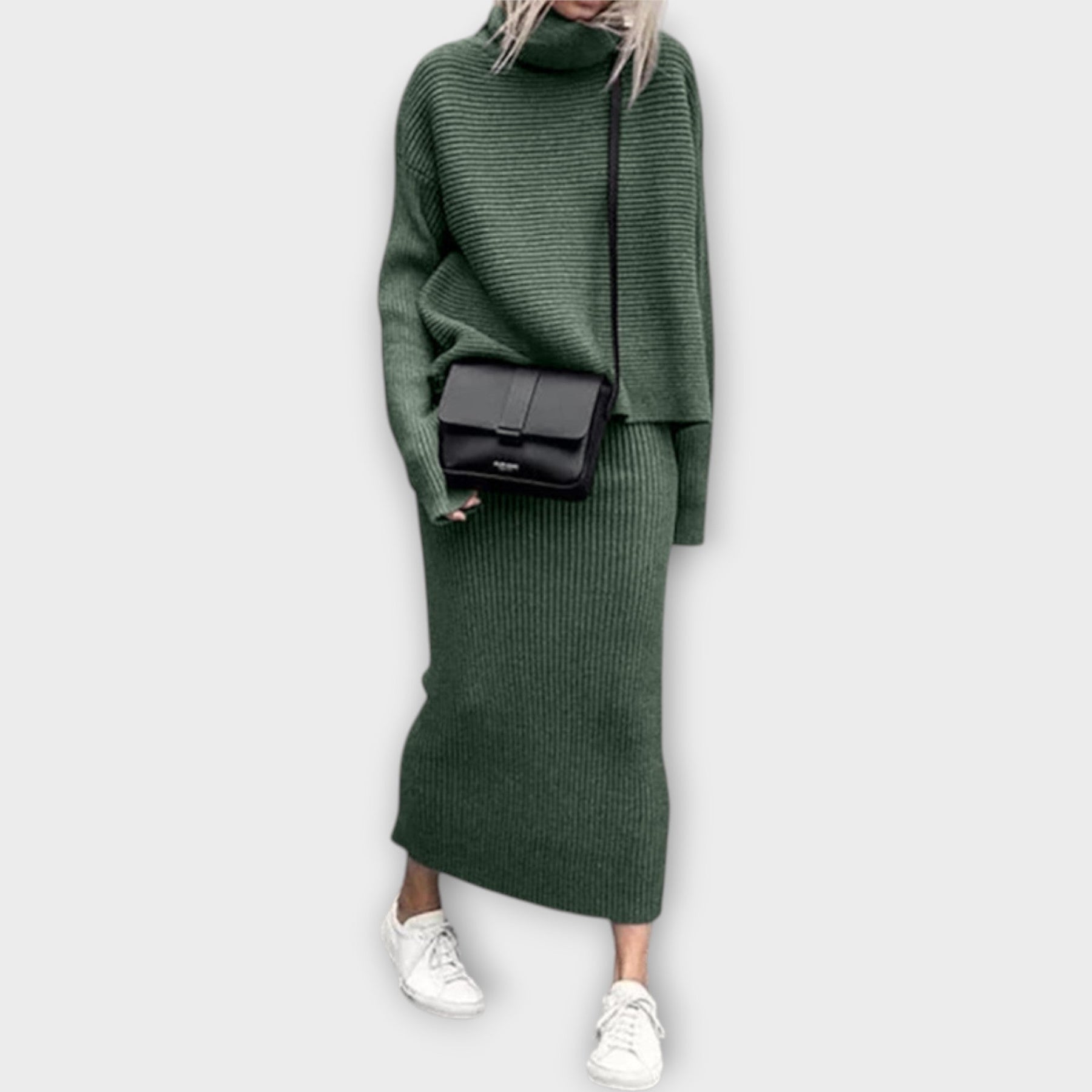 Evija - Adīta komplekta ar apkakli un svārkiem