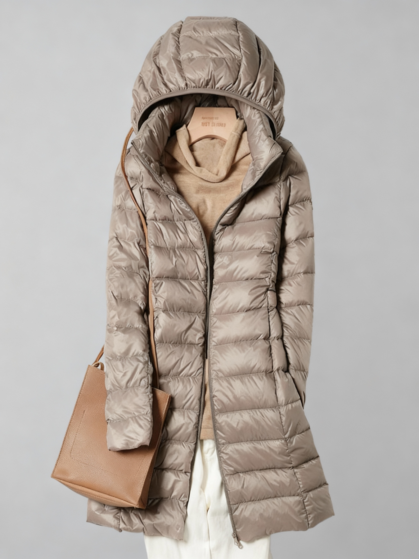 Piedāvājam īpaši vieglu polsterētu mēteli ar kapuci: elegantu, siltu un ērtu. Izgatavots no augstas kvalitātes auduma, tas ir viegls, mīksts, elpojošs un lieliski saglabā siltumu – ideāli piemērots vēsākām dienām. Mūsdienīgs dizains ar quilted detaļām piešķir klasisku un modernu akcentu, bet garāks garums un praktiska kapuce nodrošina daudzpusību jebkurai reizei.