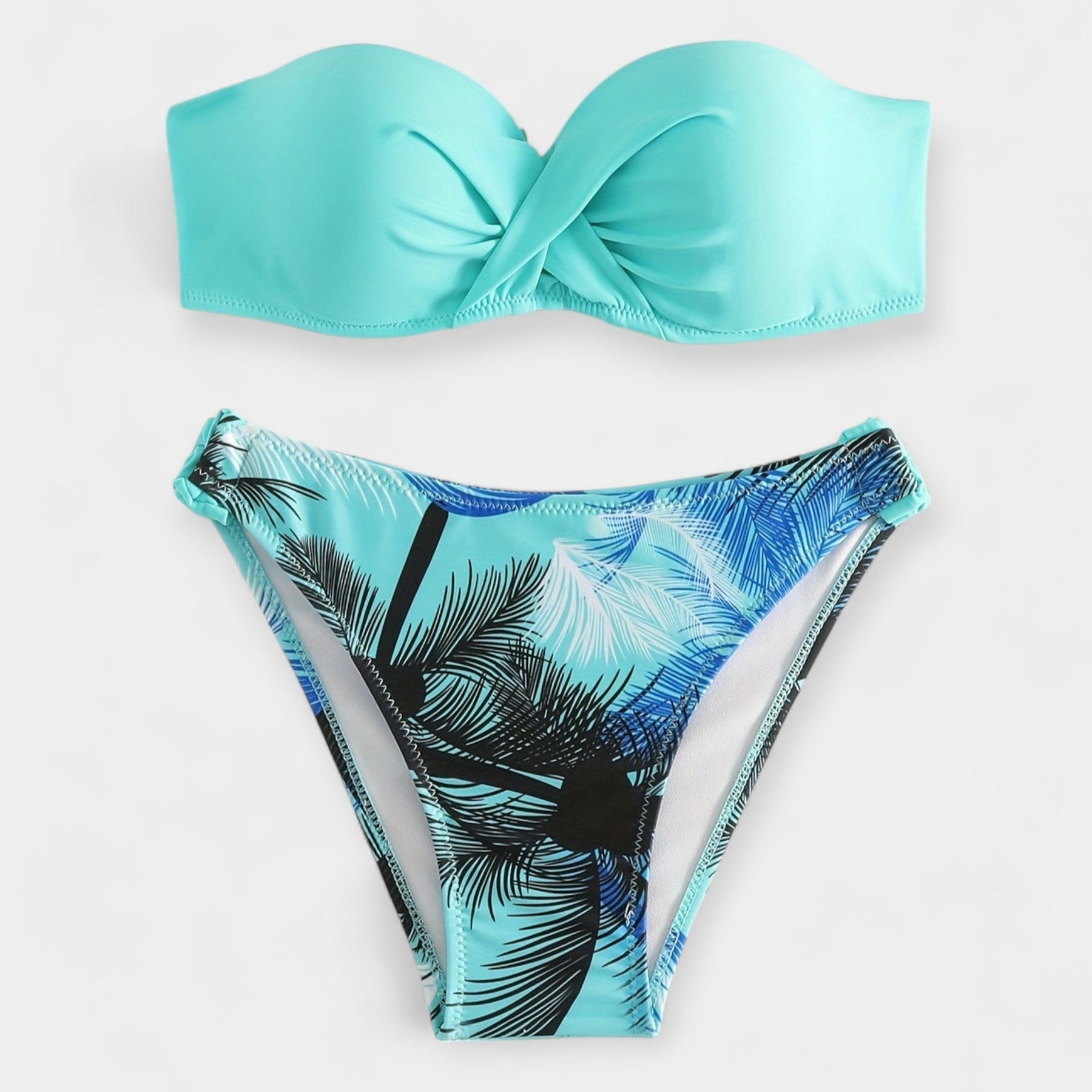 Šis iespaidīgais divdaļīgais bikini apvieno eksotisku stilu un drosmīgu sievišķību. Ar iespaidīgiem augu rakstiem, sasienamu jostu un atvērtu muguru, tas izceļ siluetu un piešķir mūsdienīgu izskatu jebkurai vasaras norisei.