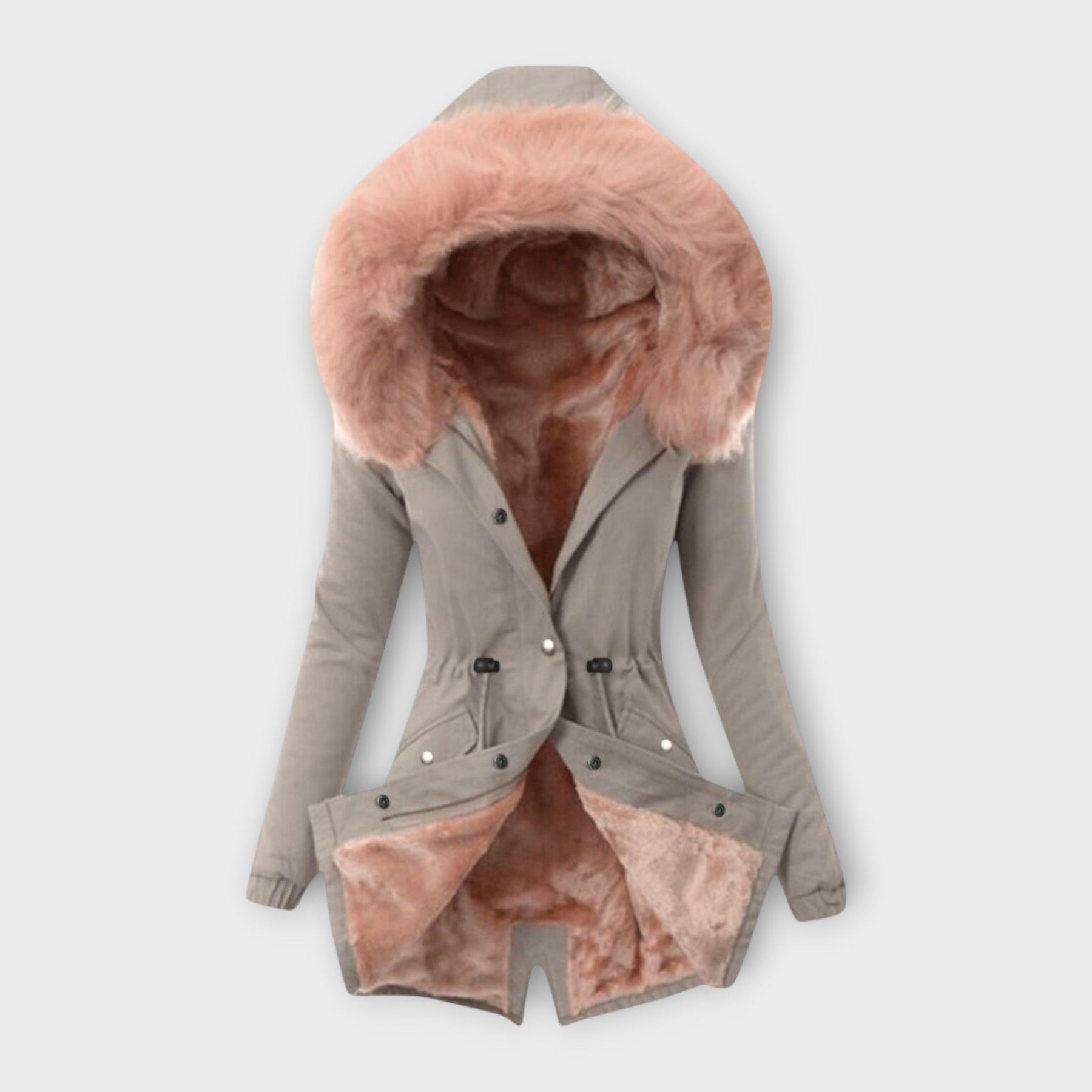 • Stilīga: Liels kapuce un kontrastējoša kažokāda rada modernu un izsmalcinātu tēlu.